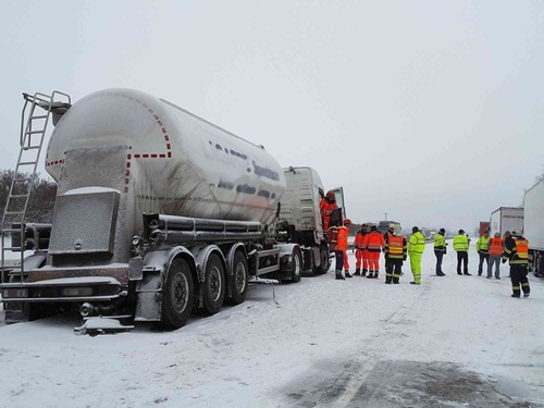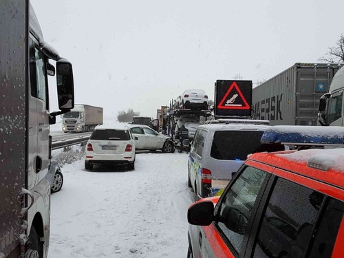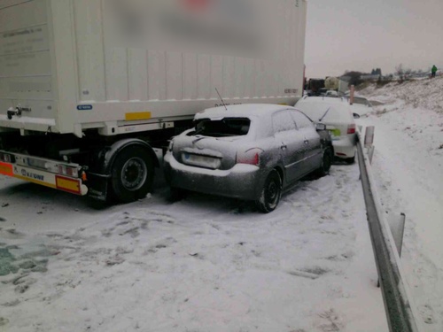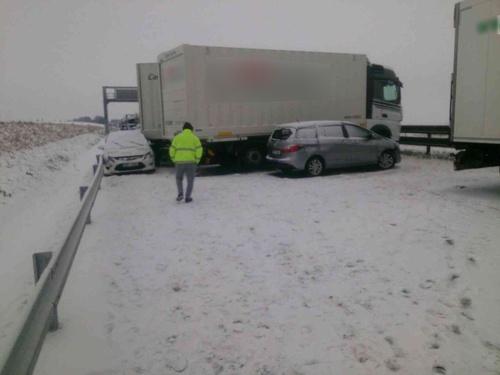 Ve 12.49 hod. přijali hasiči na tísňové lince oznámení o další hromadné nehodě na dálnici. Na 207. km D1 ve směru z Vyškova na Brno havarovaly nákladní a osobní automobily, které zcela zablokovaly dálnici. Na místo se postupně dostavili hasiči z deseti jednotek. V první fázi poskytli první pomoc a pomáhali s ošetřením sedmi zraněných. Zabezpečili vozidla proti vzniku požáru a likvidovali uniklé provozní kapaliny. Po několik hodinách, kdy dálnice stála, zajistili pro lidi ve vozech teplé nápoje a stravu. Připravili také místo, kde se mohli ukrýt před nepříznivými vlivy počasí. Po devatenácté hodině odstranili havarovaná auta z dálnice a kolona od 210. kilometru se rozjela. Hasiči se specializovanou firmou uklízeli dálnici až do jednadvacáté hodiny, poté zásah ukončili. Na místě zůstala dál odtahová služba a Policie ČR.