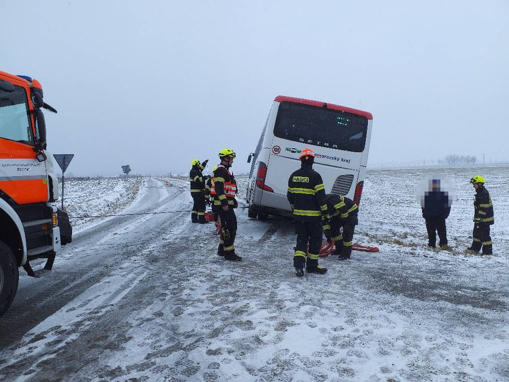 Nejvážnější událost dne se odehrála na Znojemsku. Řidič kamionu nezvládl jízdu na kluzké silnici a narazil do obytného domu. Náraz poškodil statiku objektu a řidiče museli hasiči vyprostit z kabiny. Na místo dorazil statik, který posoudil míru narušení stavby. Obyvatel domu jako zázrakem vyvázl bez zranění.