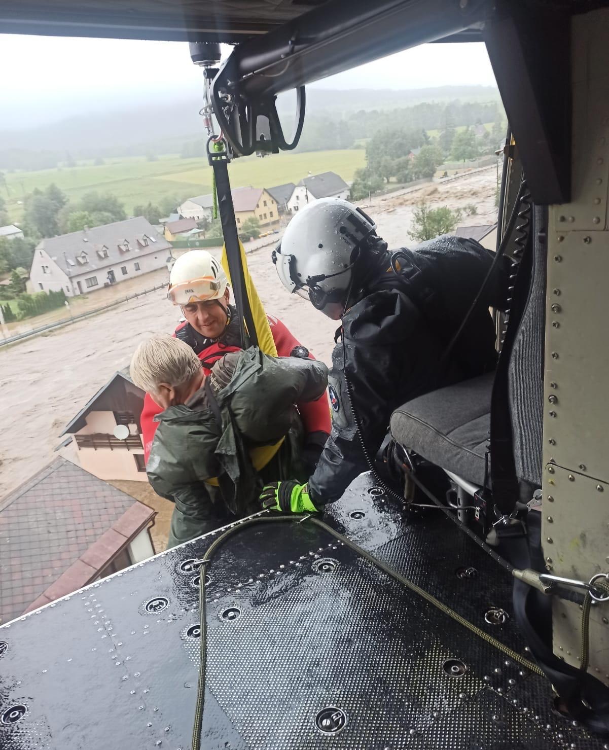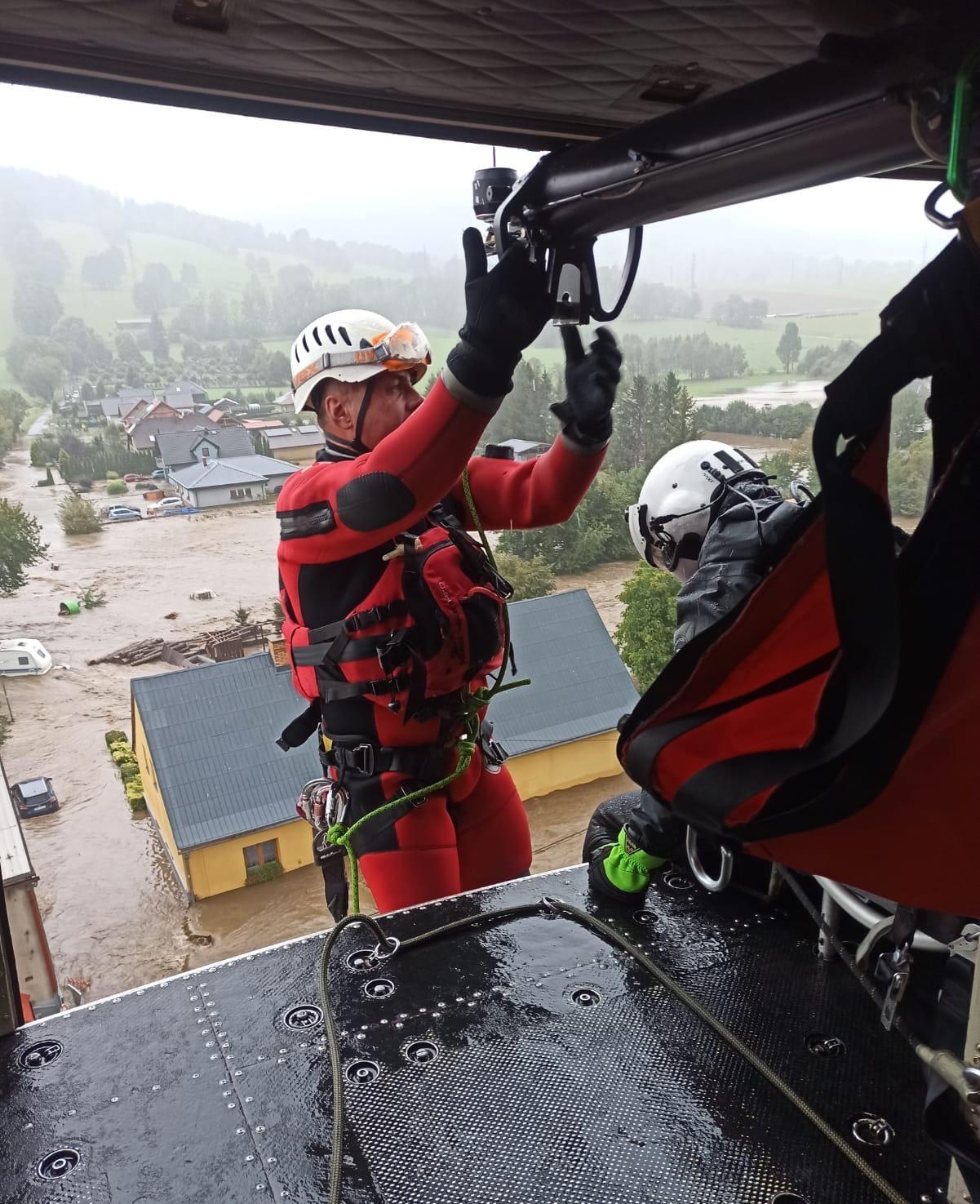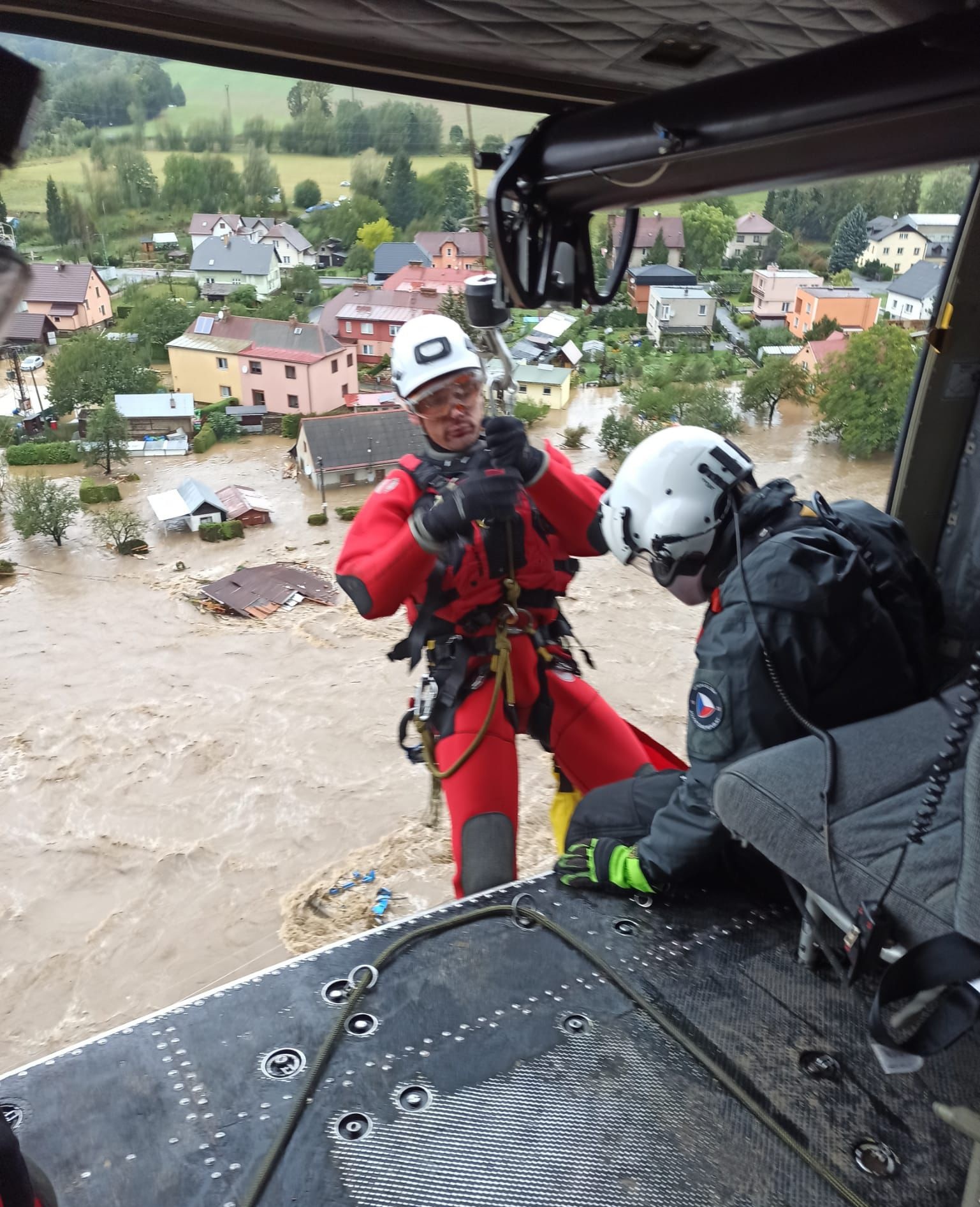 Naši hasiči-letečtí záchranáři pomáhají v postižených oblastech severní Moravy. Dva již operují z paluby vrtulníku Letecké služby Policie ČR, další dva jsou v pohotovosti připraveni zapojit se do záchranných prací.