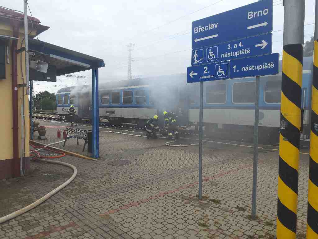 V 8.18 hod. jsme přijali na operační středisko informaci o požáru uvnitř železničního vozu během jízdy. Zaměstnanci soupravy přesunuli cestující do bezpečné části soupravy a vlak zastavili na nádraží v obci Vranovice. Před příjezdem hasičských jednotek opustilo vlak asi 40 cestujících.