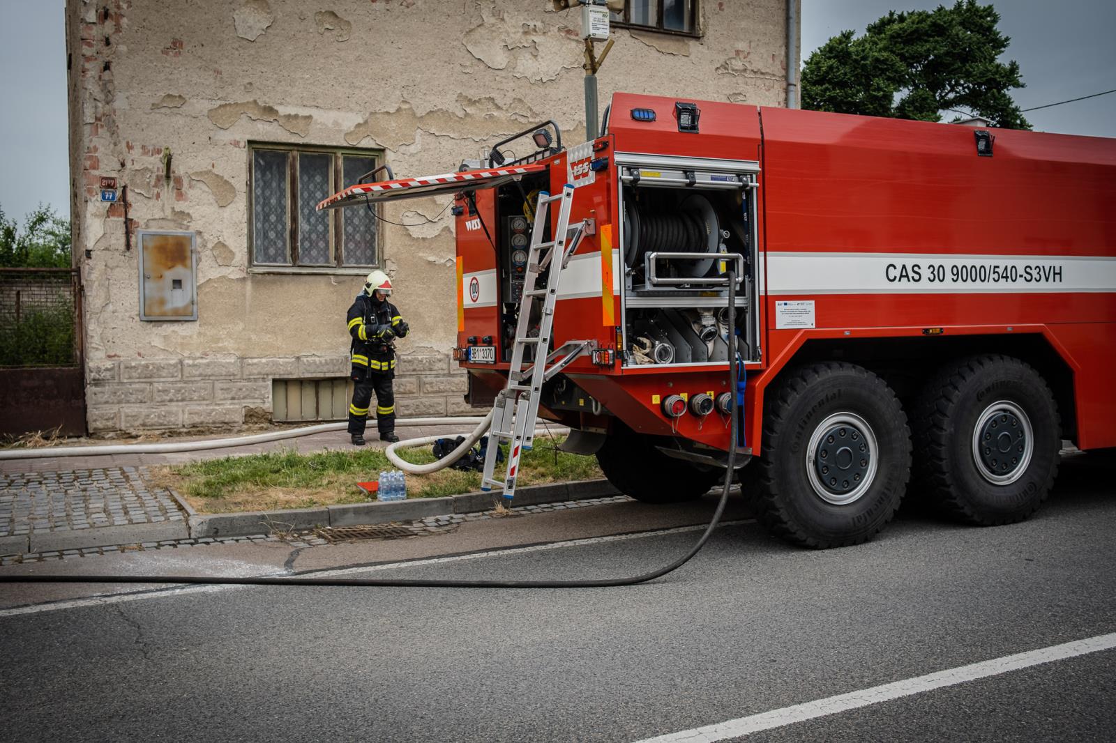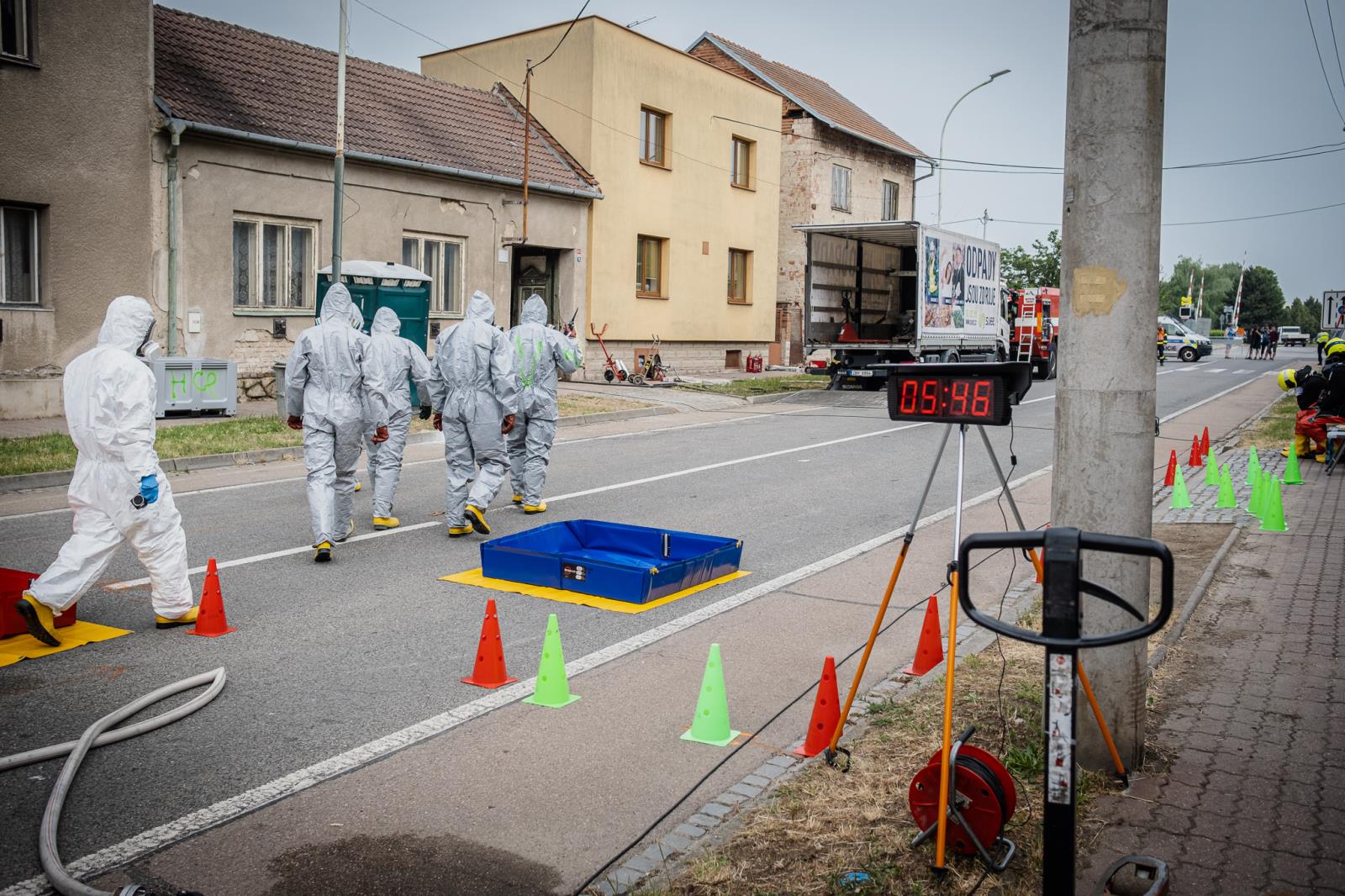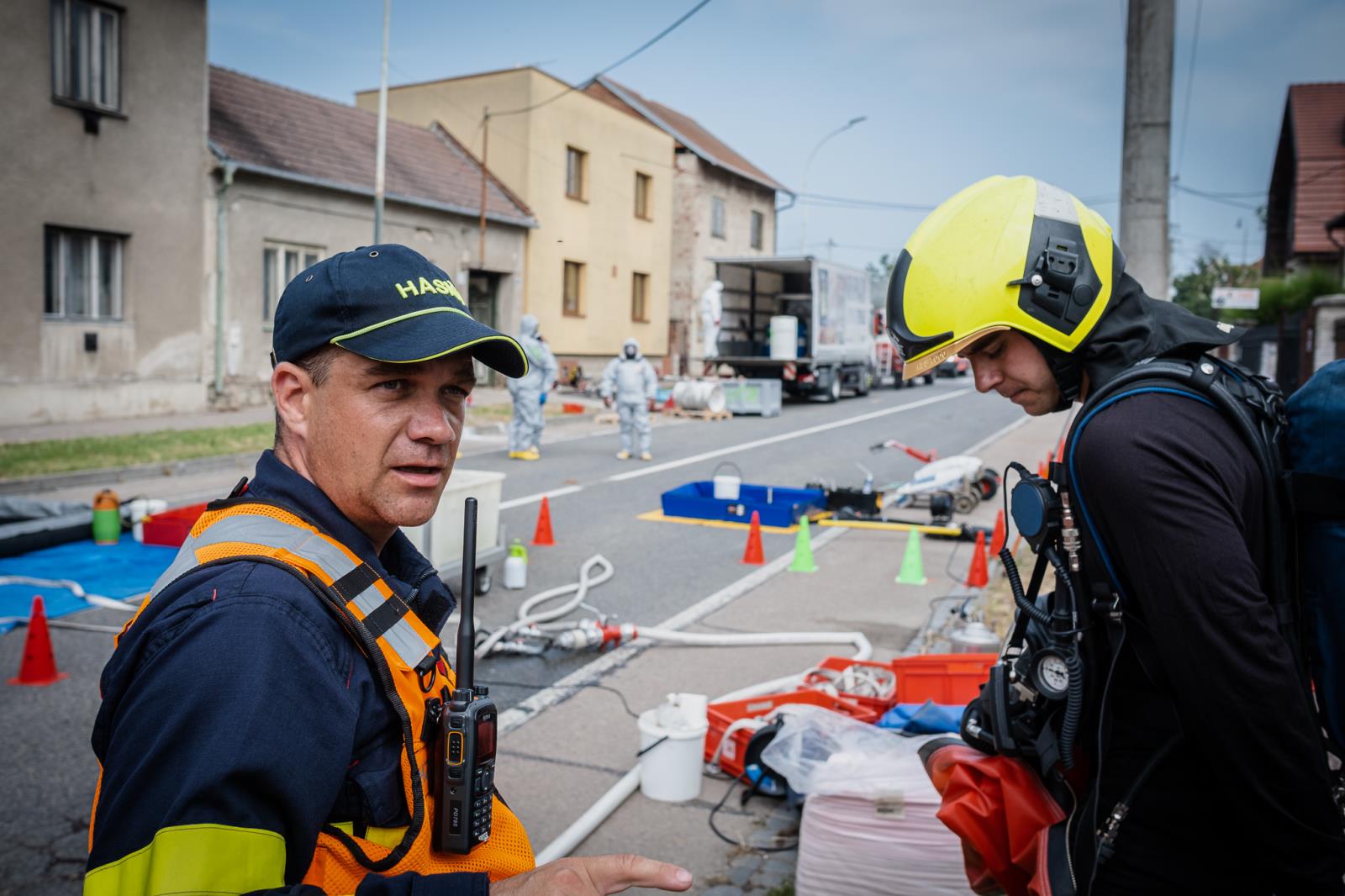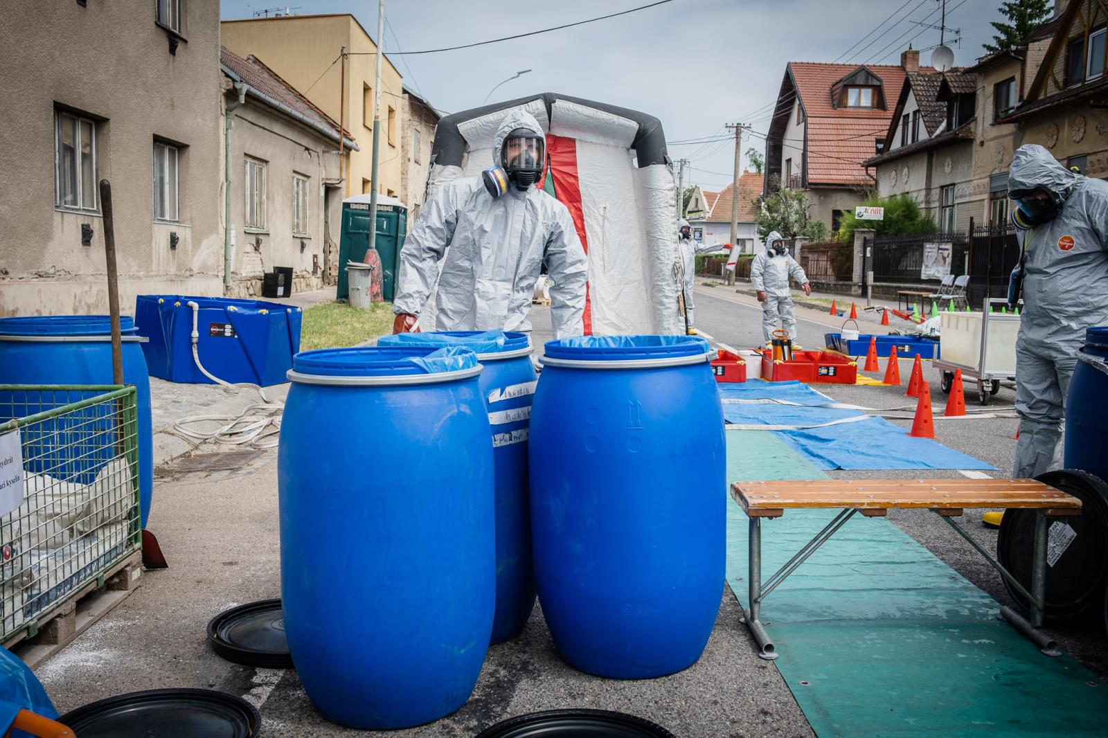 Ulice byla uzavřena a obyvatelé evakuováni. Dnes na osmou hodinu ráno přijela na místo naše speciální technika určená k zásahům na nebezpečné látky. Na místě byl např. chemický kontejner, technický automobil-chemický, mobilní chemická laboratoř, protiplynový automobil a také mobilní operační pracoviště.