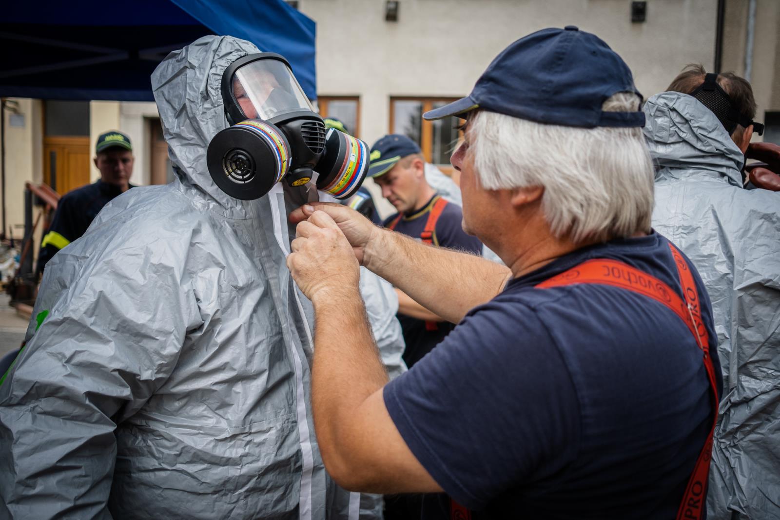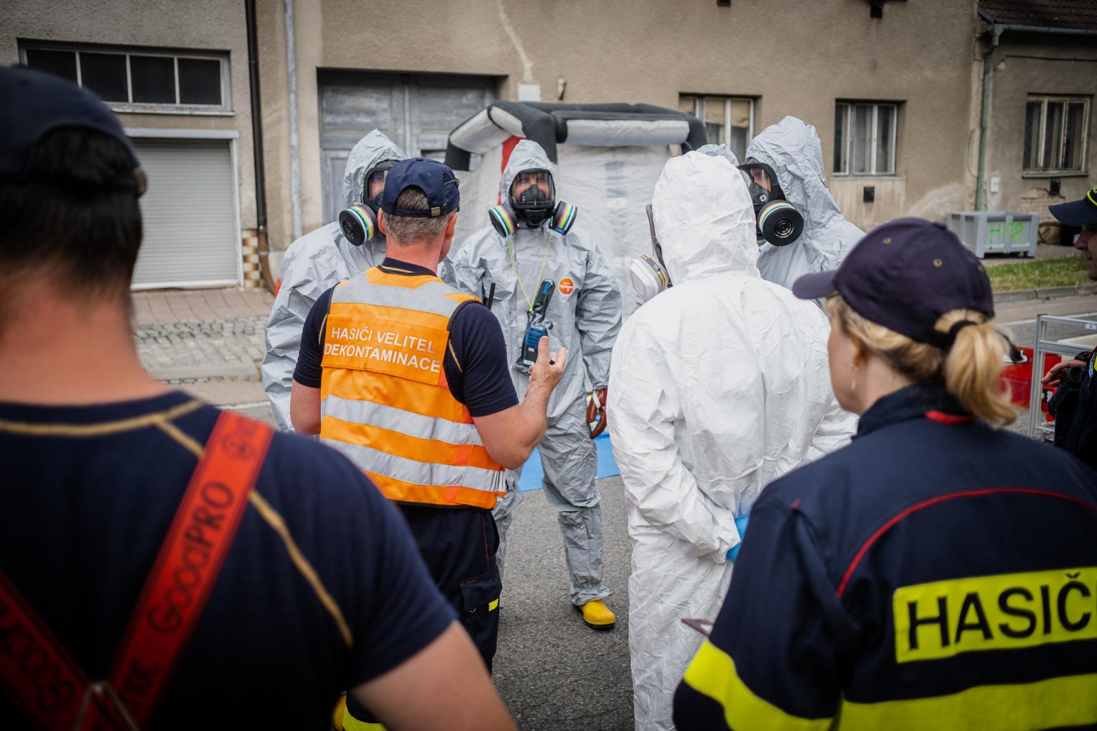 V blízkosti domu hasiči vytyčili nebezpečnou zónu, do které vstupovali pouze v ochranných oděvech. Připravena byla jistící skupina i dekontaminační stanoviště.