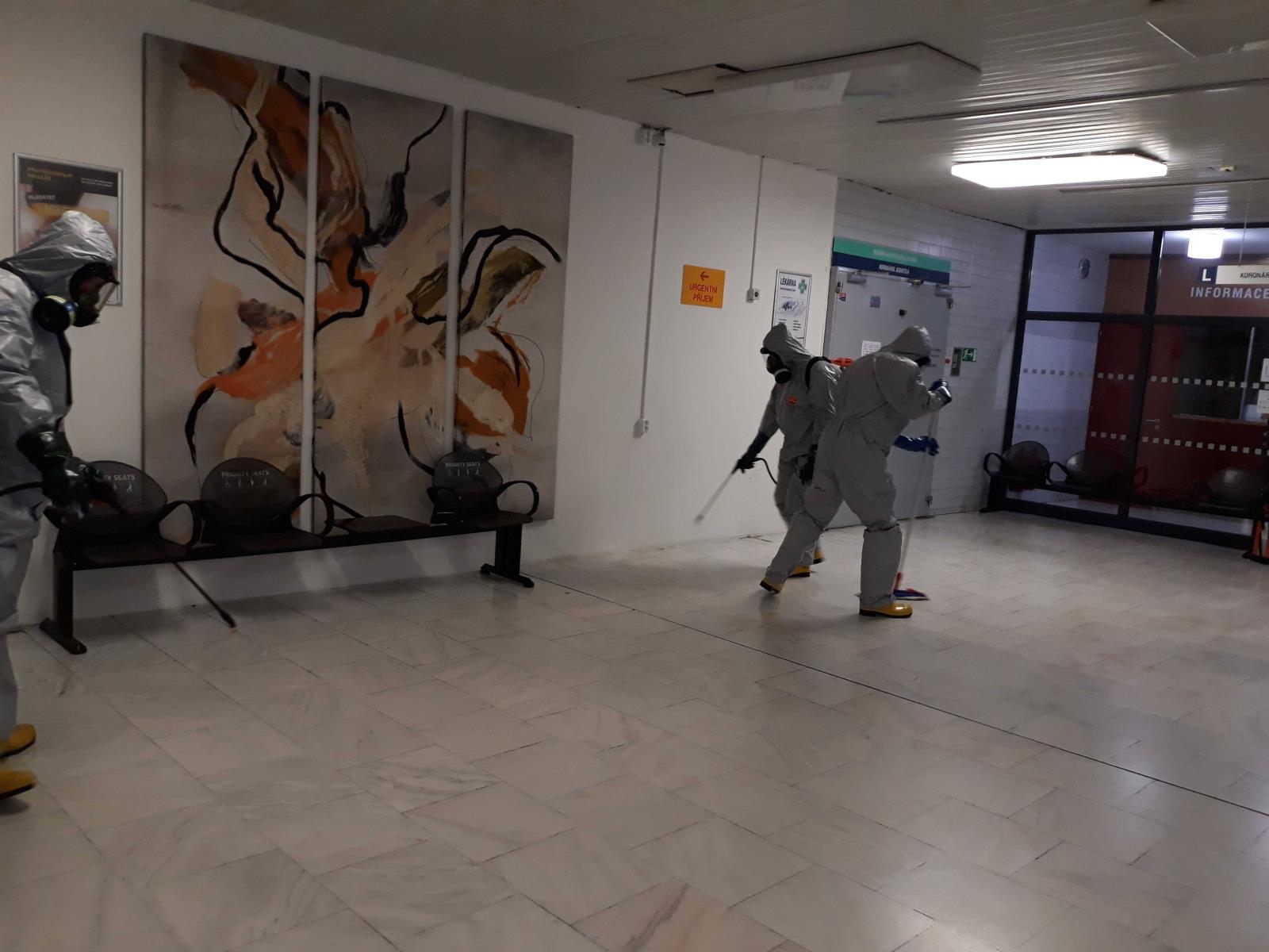 Hasiči pokračovali v dezinfekci nemocnice
