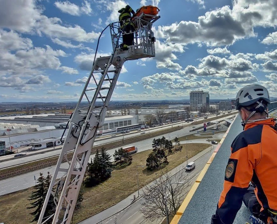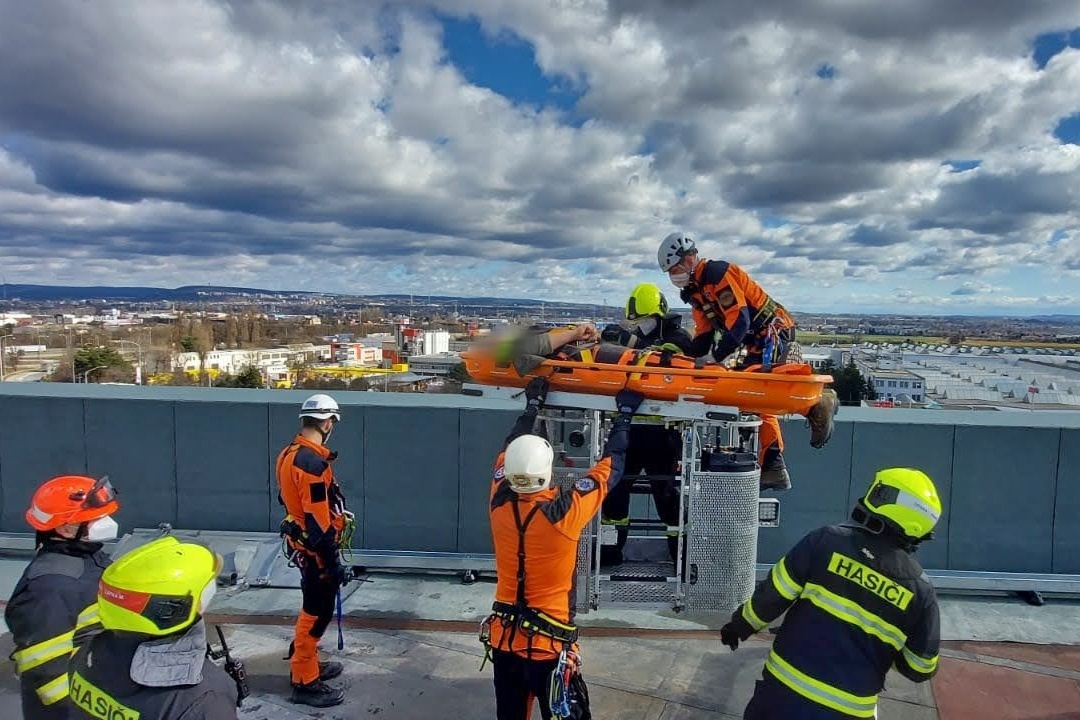 Pátek, 12. března 2021 – Dvě profesionální hasičské jednotky vyslalo operační středisko dnes dopoledne k transportu pacienta ze střechy budovy v Dolních Heršpicích v jižní části Brna.