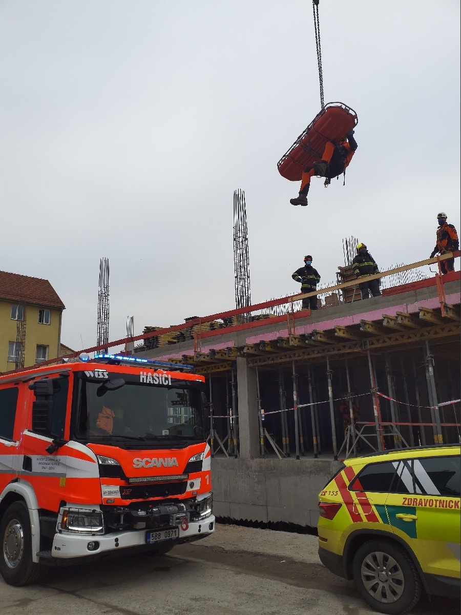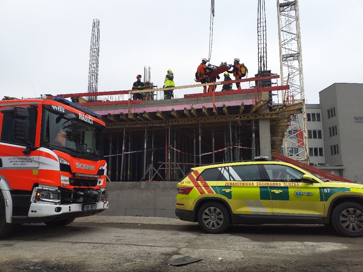 Zásah se odehrál na stavbě v blízkosti ulice Čechyňská. Jednotka po příjezdu na místo zjistila, že zraněný muž je v přibližně 5 metrů hluboké šachtě a již v péči posádky záchranné služby. Hasiči a záchranáři muže stabilizovali, uložili do transportní vany a s pomocí stavebního jeřábu a hasičů-lezců byl zraněný vyproštěn z šachty. Celý zásah na místě trval přibližně půl hodiny.