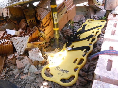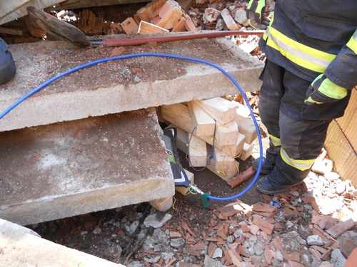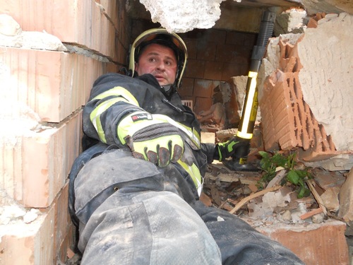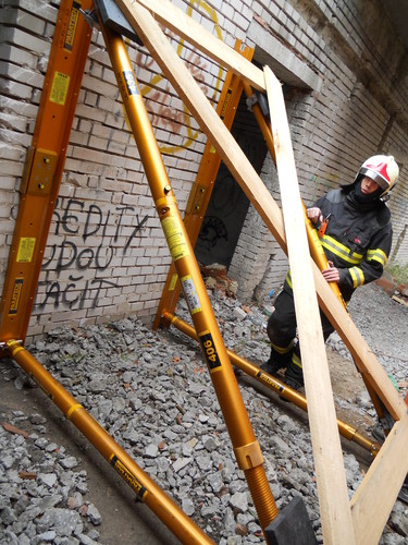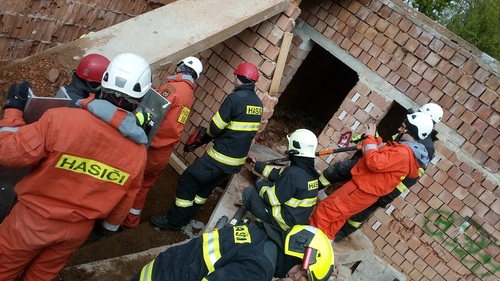 Druhý den si měli hasiči možnost vyzkoušet zvedání těžkých břemen bez použití jeřábu a záchranu zavalených osob v sutinách a výkopu.