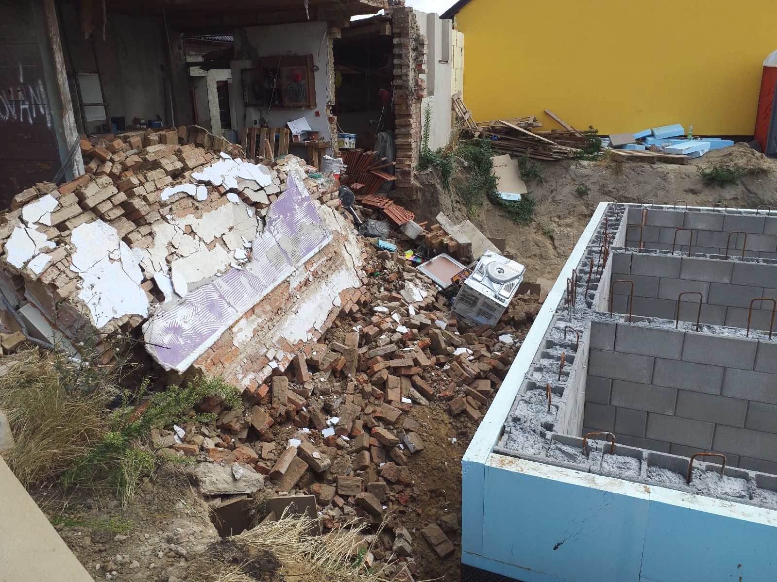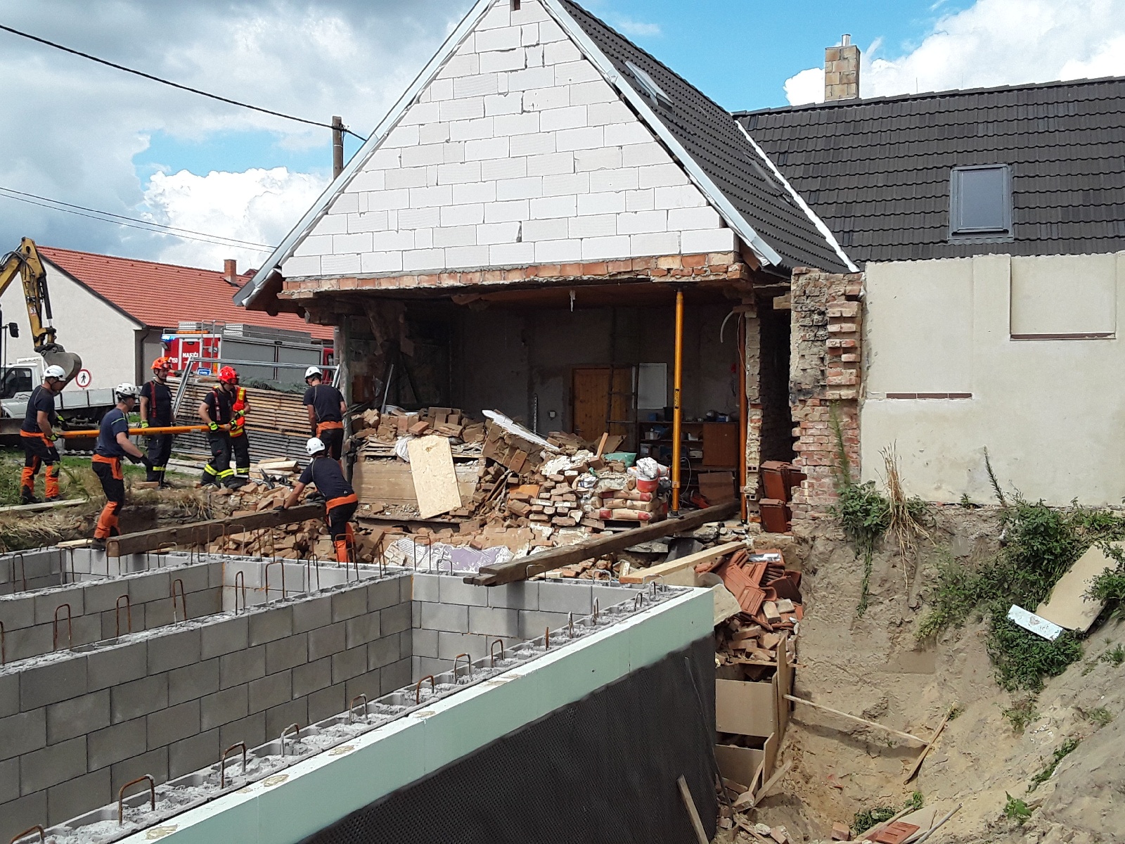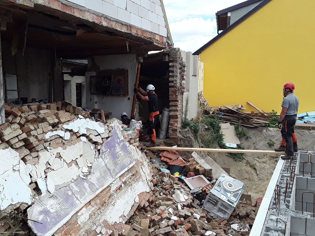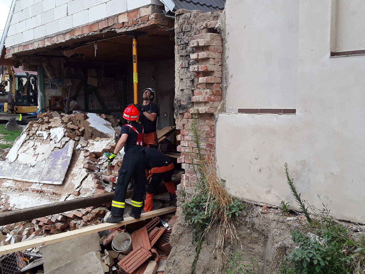 Pátek, 8. července 2022 - Krátce před polednem tři jednotky zasahovaly v obci Mikulčice při destrukci stěny rodinného domu. Stěna domu se zřítila do výkopu vedlejšího pozemku. Při pádu stěny se nikdo nezranil.