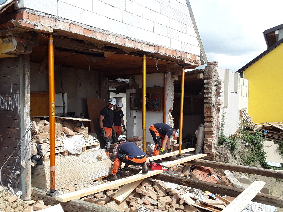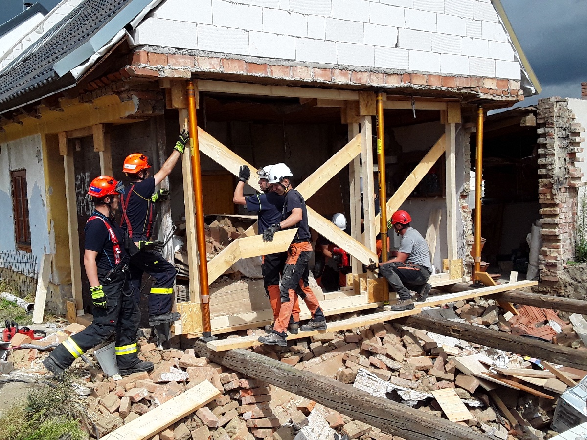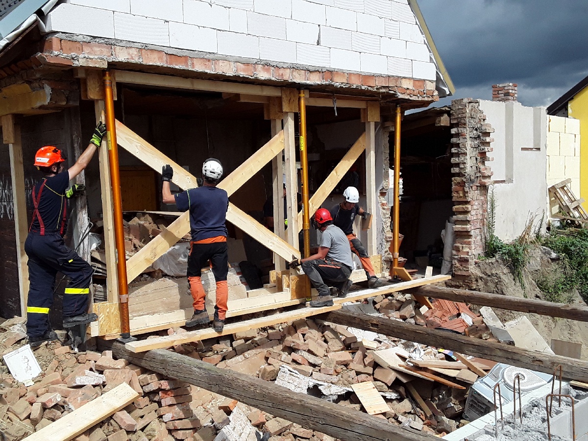 Hasiči odpojili přívod elektrické energie a plynu. Za dohledu statika lezecká skupina ze stanice Lidická provedla prvotní stabilizaci stěny domu pomocí stabilizačních tyčí Paretech. Následně stabilizovalii stropní konstrukci pomocí výdřevy.