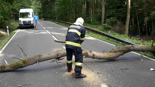 Hasiči ve čtrnácti případech likvidovali popadané stromy a větve. Několik nebezpečně nakloněných stromů museli pokácet.