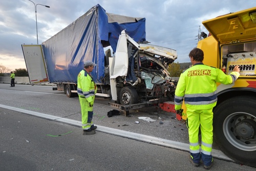 Téměř hodinu vyprošťovali hasiči zaklíněného řidiče kamionu ze zdeformované kabiny. Nehoda dvou kamionů a osobního vozu se stala v pátek 13.10. 2017 na 190. km dálnice D1 ve směru z Prahy na Vyškov. Komunikace byla uzavřená déle jak dvě hodiny.
