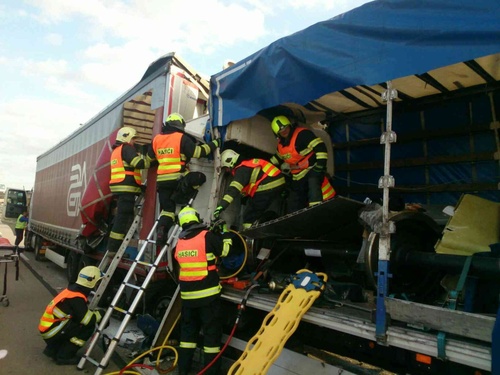 Hasiči vyprošťovali na dálnici řidiče kamionu