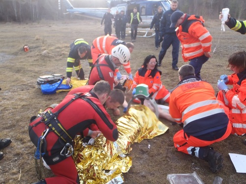 Muže se podařilo najít za 13 minut od příjezdu první jednotky a to v hloubce cca 2,5 metru. Ihned byl vyproštěn a předán k resuscitaci záchranné službě. Hasiči ještě zajistili zraněnému tepelný komfort. Muž byl následně transportován do nemocnice.