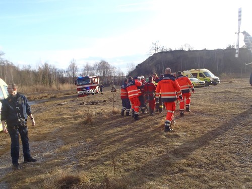 Po příjezdu informoval hasiče o situaci kamarád pohřešovaného muže. Ten si šel údajně zaplavat, potopil se pod led a již nevyplaval. Čtyři hasiči v neoprenech se snažili plavce najít, ale pod ledem byla minimální viditelnost. Ve dvaceticentimetrovém ledu proto hasiči vyřezali 4 otvory, kterými postupně prostor pod ledem prozkoumávali.
