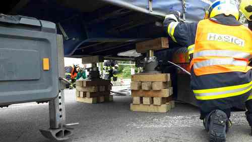 Hasiči na místě zajistili návěs a pak jej pomocí hydraulických zvedáků (panenek) vrátili do vodorovné polohy. Umožnili tak odjetí kamionu a přistavení náhradního tahače. Celá manipulace byla rychlá právě díky hydraulickým panenkám Lukas, které dostal HZS Jihomoravského kraje dlouhodobou zápůjčkou od Dopravního podniku města Brna.