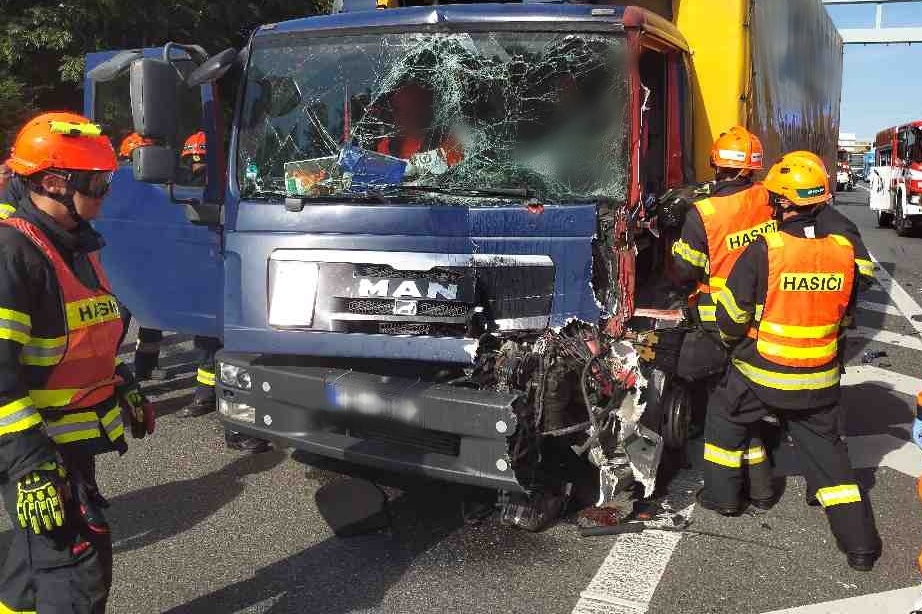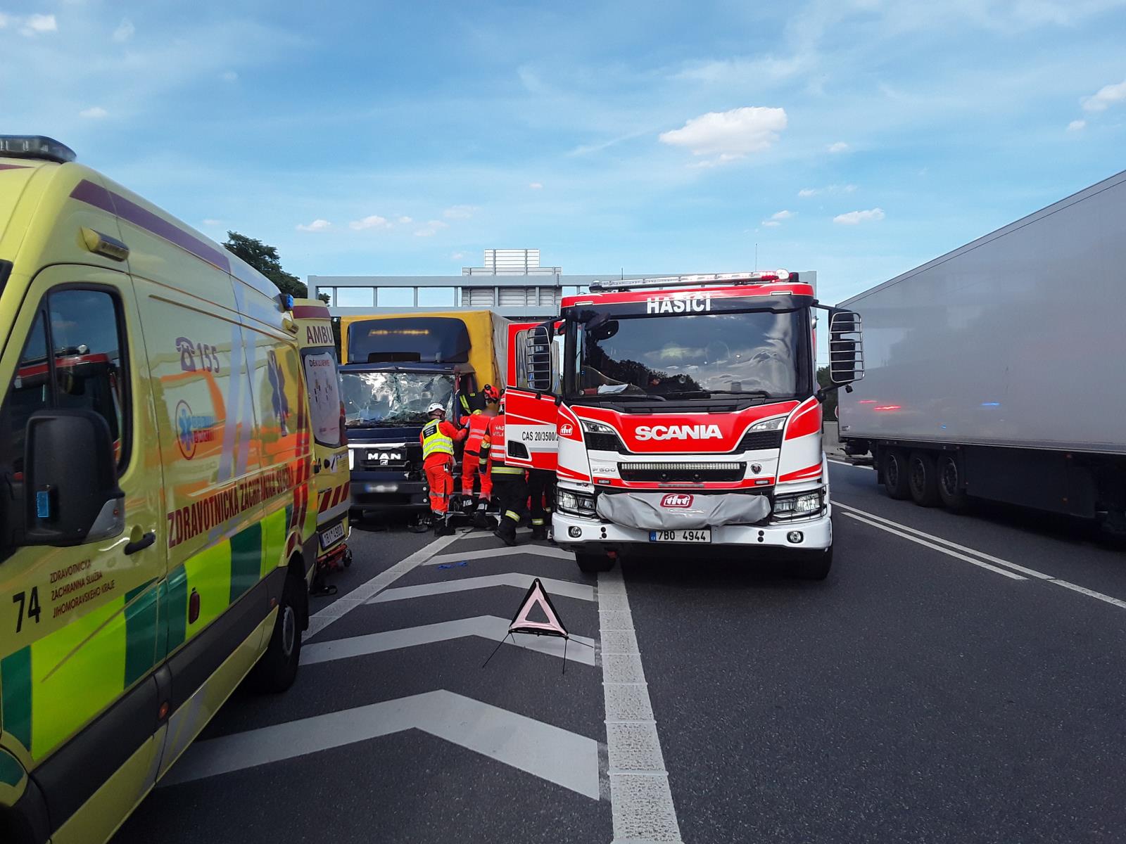 Tři profesionální hasičské jednotky vyslalo naše operační středisko dnes krátce před 17. hodinou k dopravní nehodě na 203. kilometru dálnice D1 ve směru na Prahu. Dva nákladní vozy se střetly v prostoru dálničního sjezdu.
