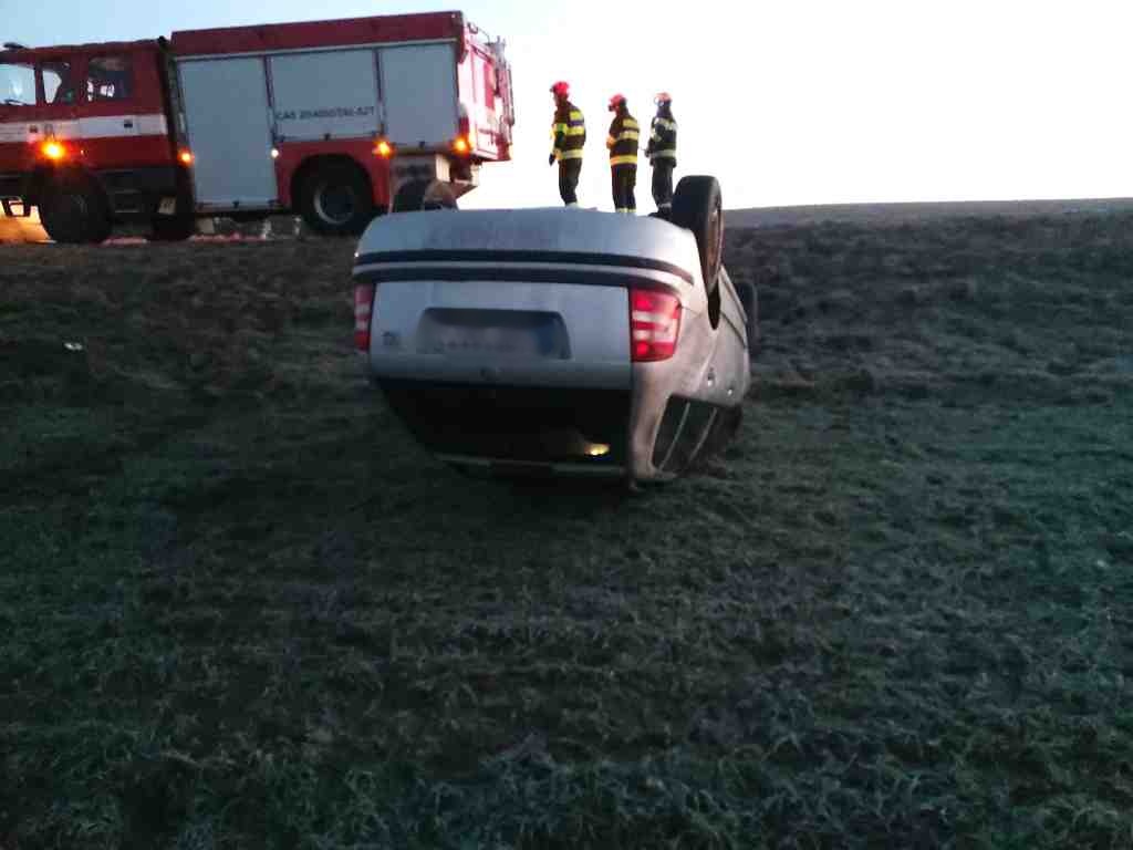Na Znojemsku zasahovaly po 6. hodině dvě jednotky také u nehody v obci Štítary. Osobní vůz havaroval do sloupu veřejného osvětlení. Událost se obešla bez zranění.