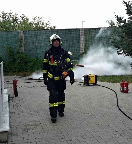Proti plamenům nasadili zasahující hasiči proud z plynového hasicího automobilu a požár dostali pod kontrolu za necelých padesát minut od ohlášení.