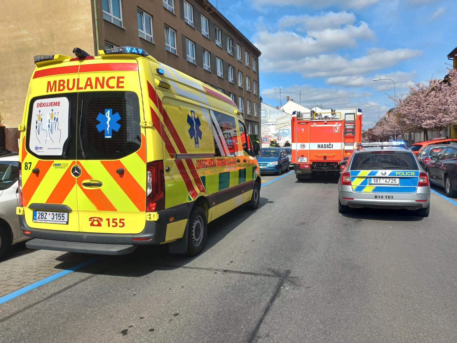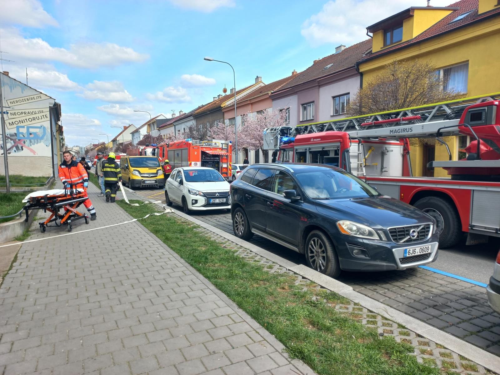 Požár zasáhl jeden z pokojů ve třetím patře. Jeho obyvatelka skončila v péči posádky záchranné služby, stejně jako další muž.