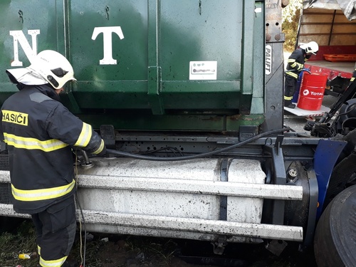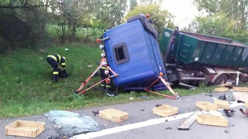 Řidiče nákladního vozu transportoval vrtulník s posádkou záchranné služby do nemocnice. Po nehodě bylo poškozeno i jedno osobní vozidlo, ve kterém se nikdo nezranil.