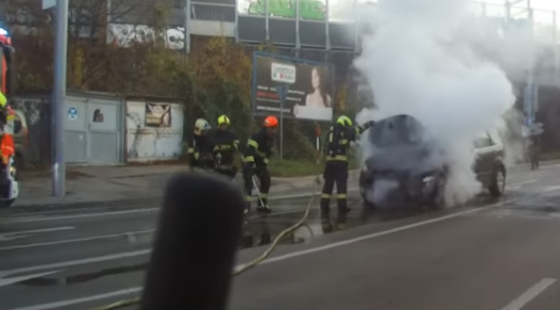 Po několika vteřinách se z motoru rozšířily plameny a automobil se začal nebezpečně posouvat směrem ke křižovatce, kde se tvořila kolona čekajících vozidel. Policisté okamžitě zahájili hašení ručním hasicím přístrojem, ale plameny již nebylo možné zcela uhasit. V kritické chvíli jeden z policistů využil vyrážecí kladivo – standardní nástroj pro vnikání do objektů – a umístil jej pod přední kolo vozu. Tím se podařilo automobil zastavit a zabránit možnému střetu s dalšími řidiči.