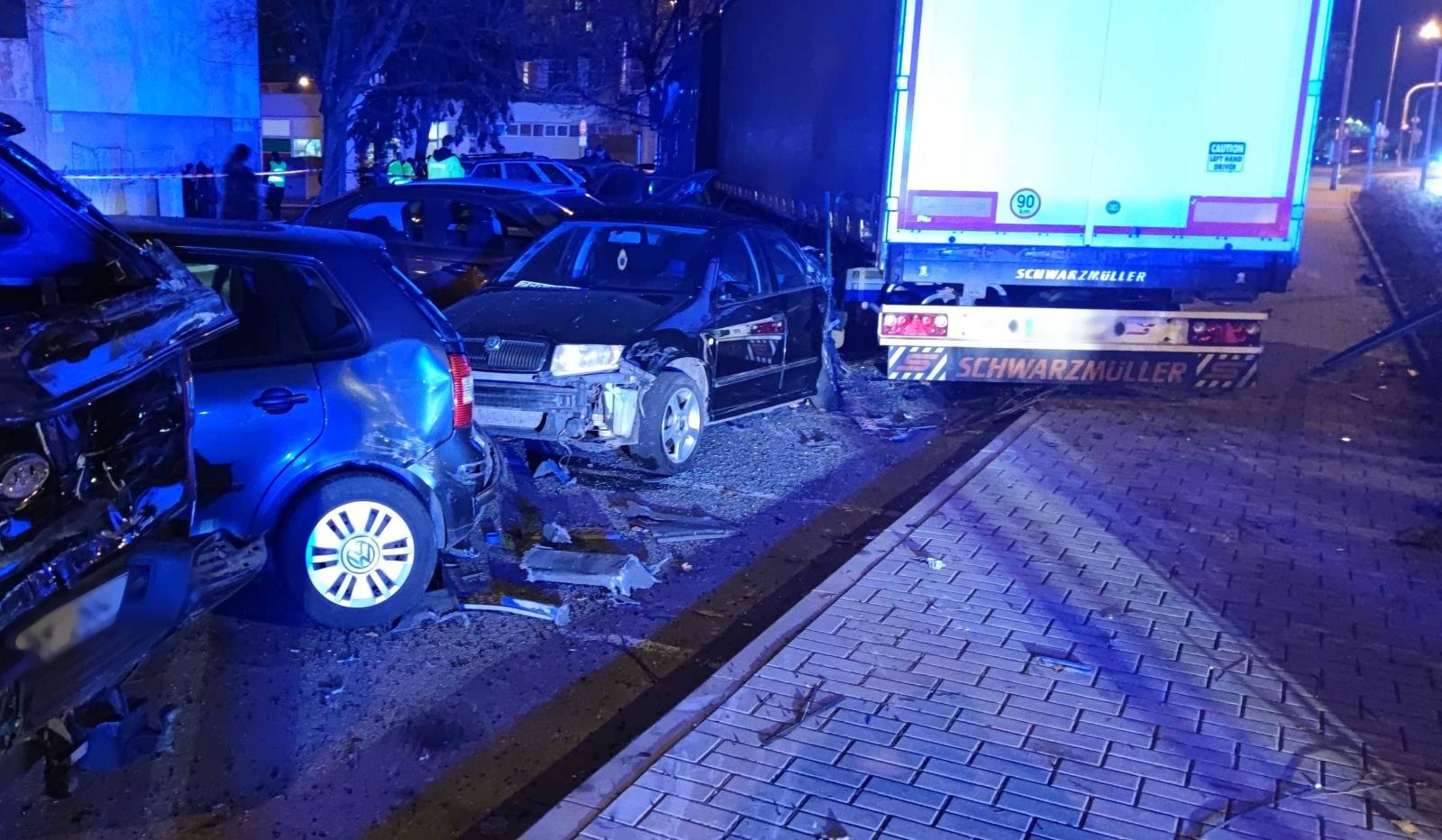 Kamion naboural zaparkovaná auta