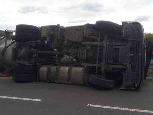 Kamion se převrátil na nájezdu k dálnici