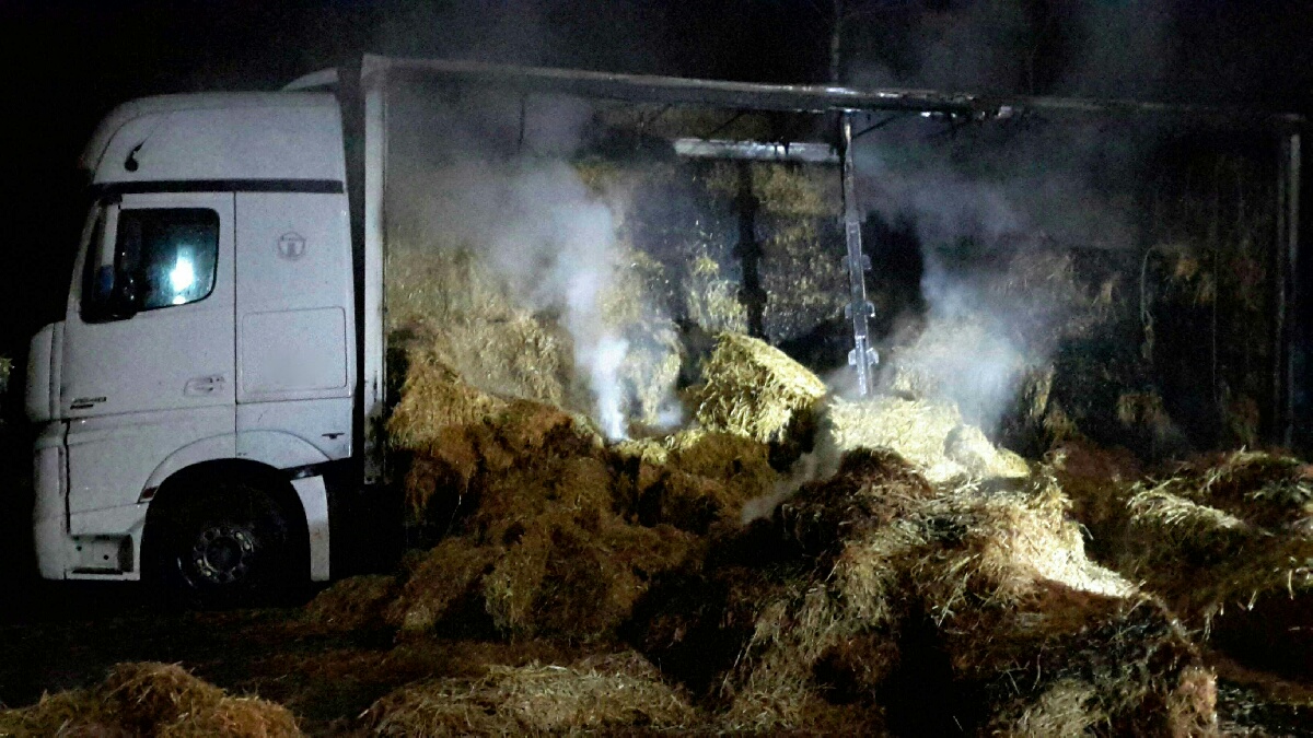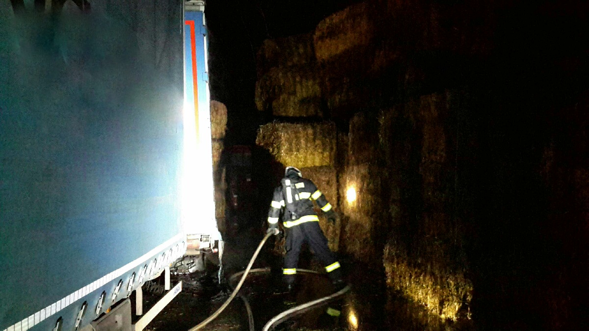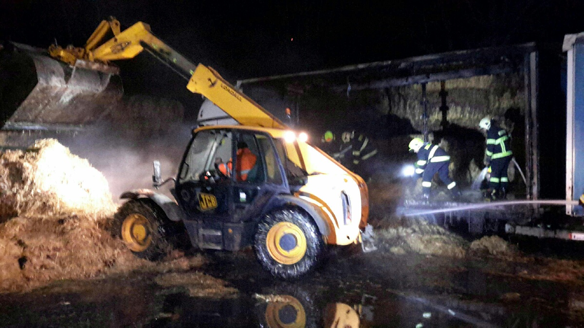 Kamion se slámou zachvátily plameny