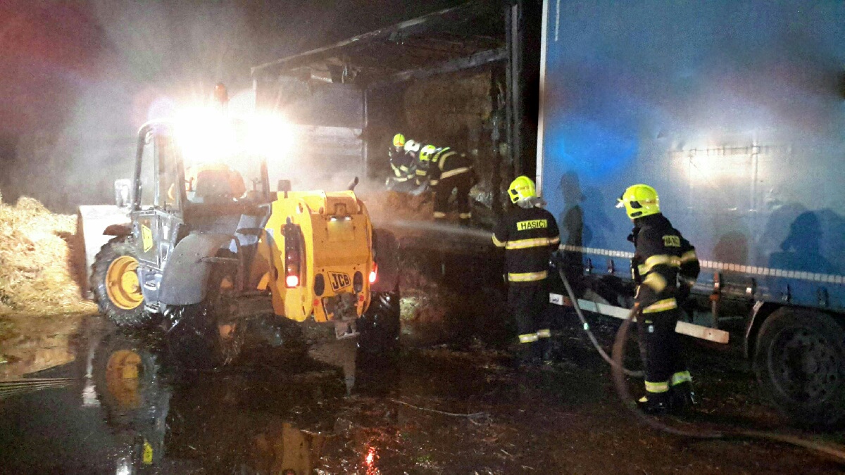 Úterý, 2. března 2021 - V Hrušovanech nad Jevišovkou krátce po 18. hodině likvidovalo pět jednotek požár nákladního auta se slámou...