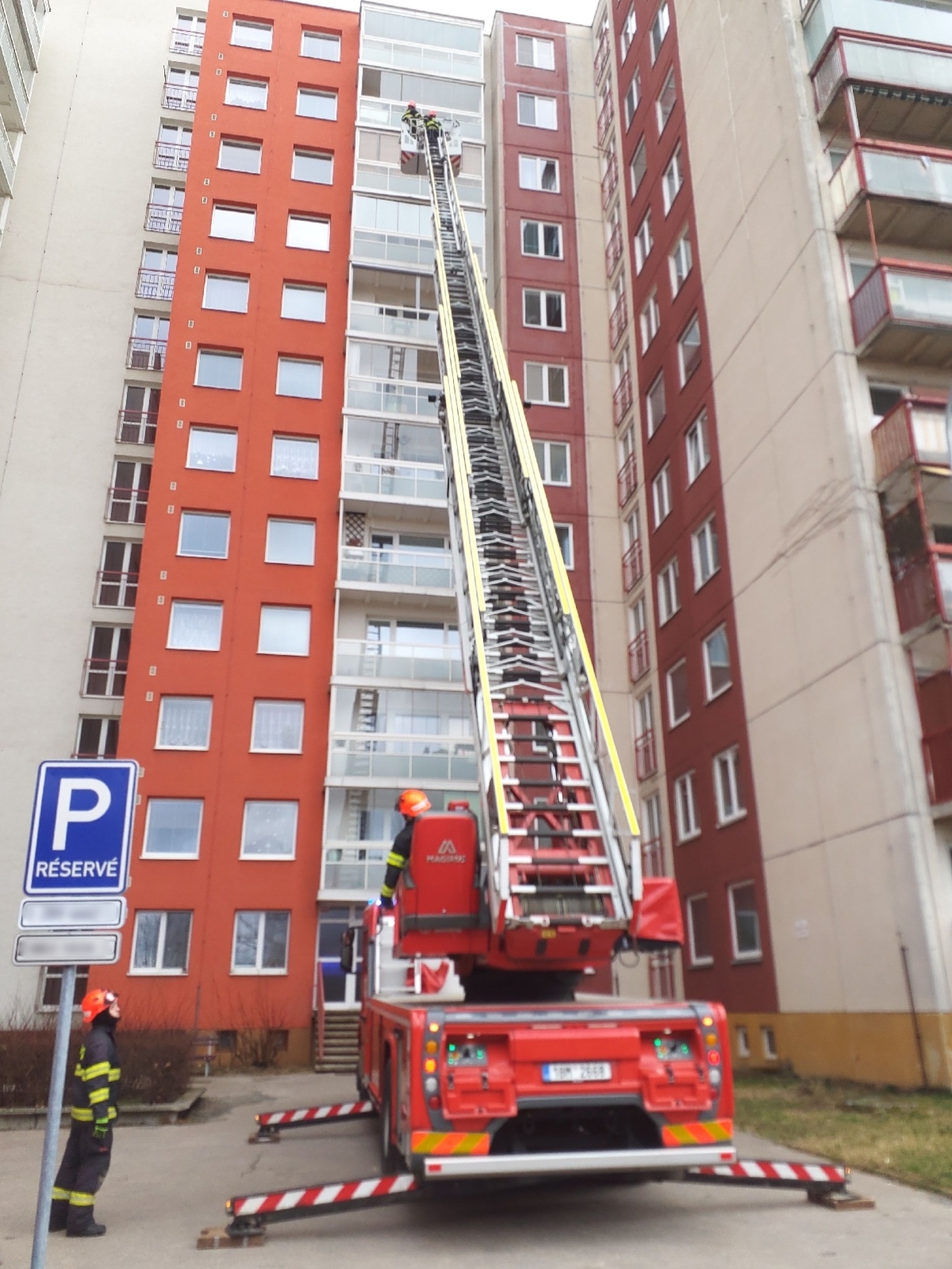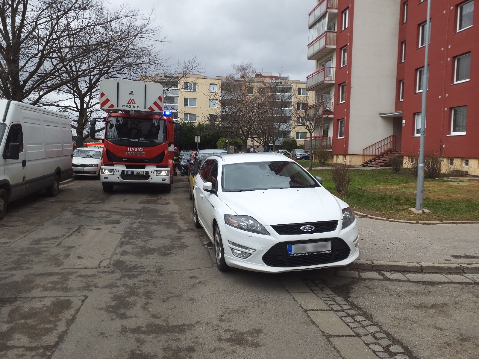 Dnes v poledne jsme spěchali na ulici Prušáneckou v Brně, na uvolněný plech, který ohrožoval kolemjdoucí. K panelovému domu bylo nutné dostat automobilový žebřík. Zásah však komplikovala špatně zaparkovaná auta. O spolupráci jsme požádali městskou policii, která nám pomohla s odstraněním vozidel. Po přeparkování několika aut jsme plech z 8. patra panelového domu odstranili.