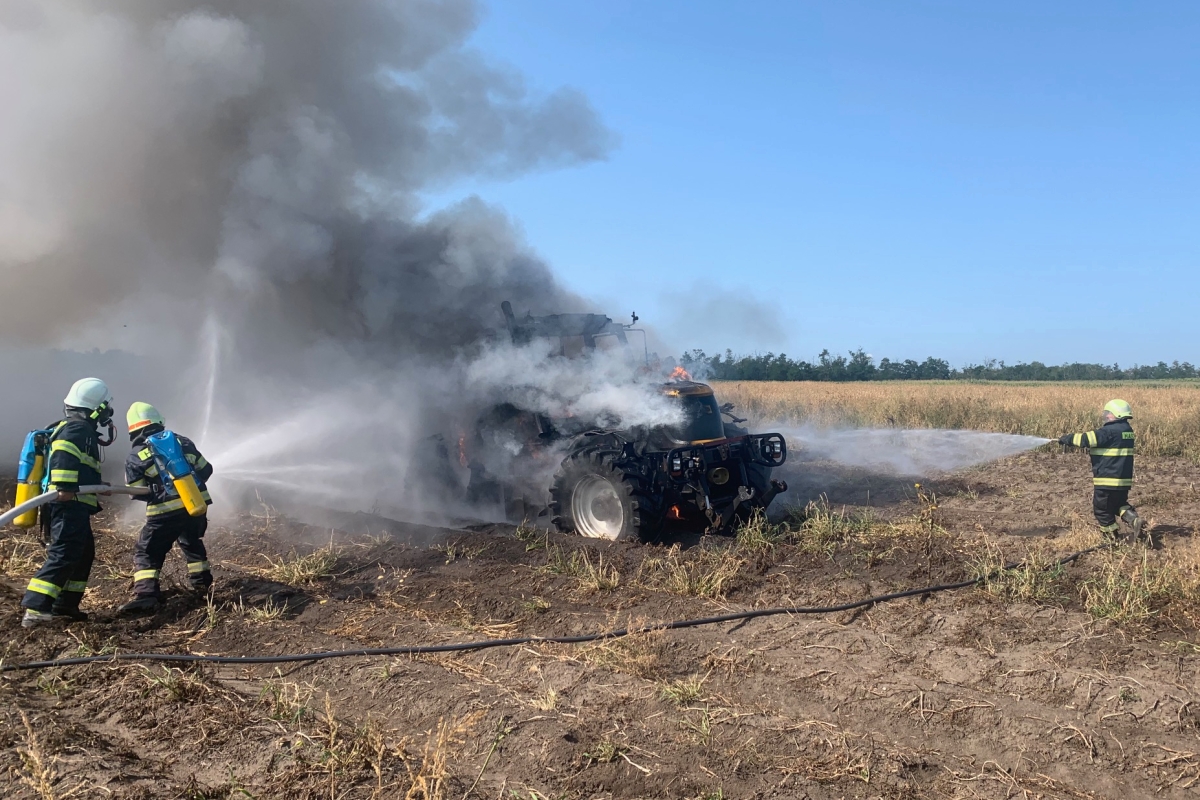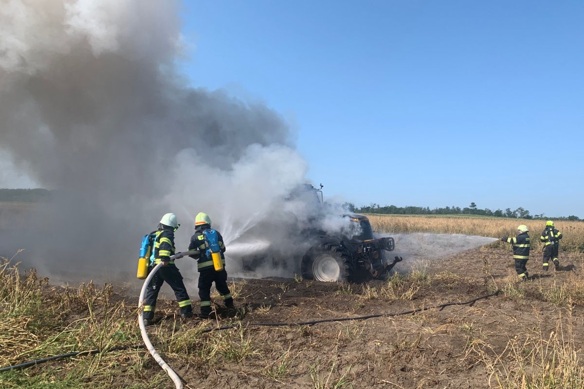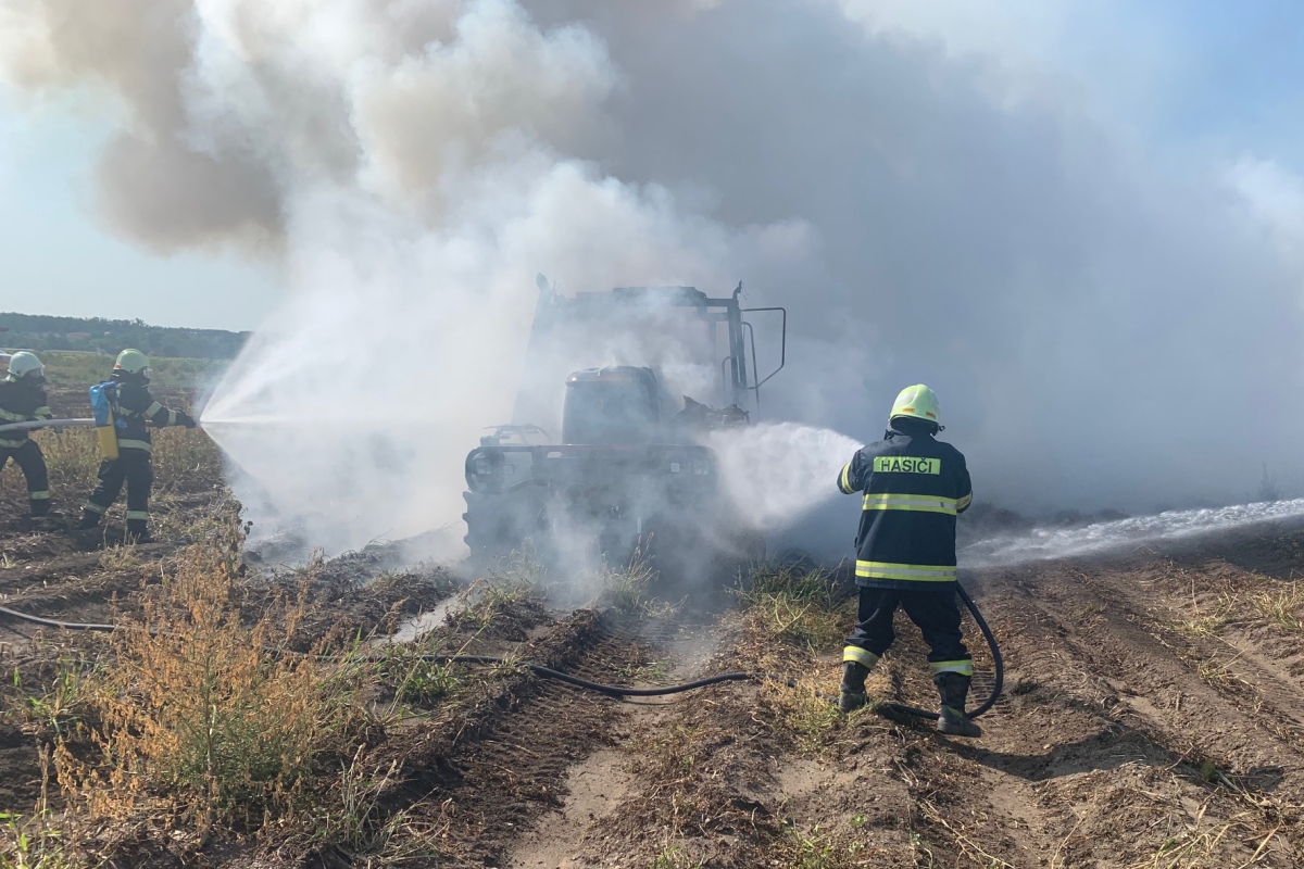 Sobota 21. srpna 2021 – Čtyři jednotky hasičů zasahovaly po desáté hodině u požáru traktoru. Stroj hořel v polích za Božicemi...
