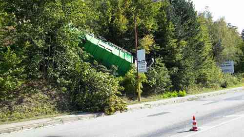Na Blanensku se převrátil popelářský vůz