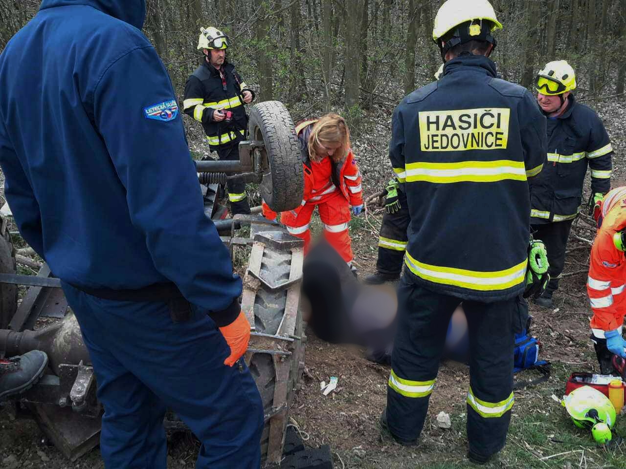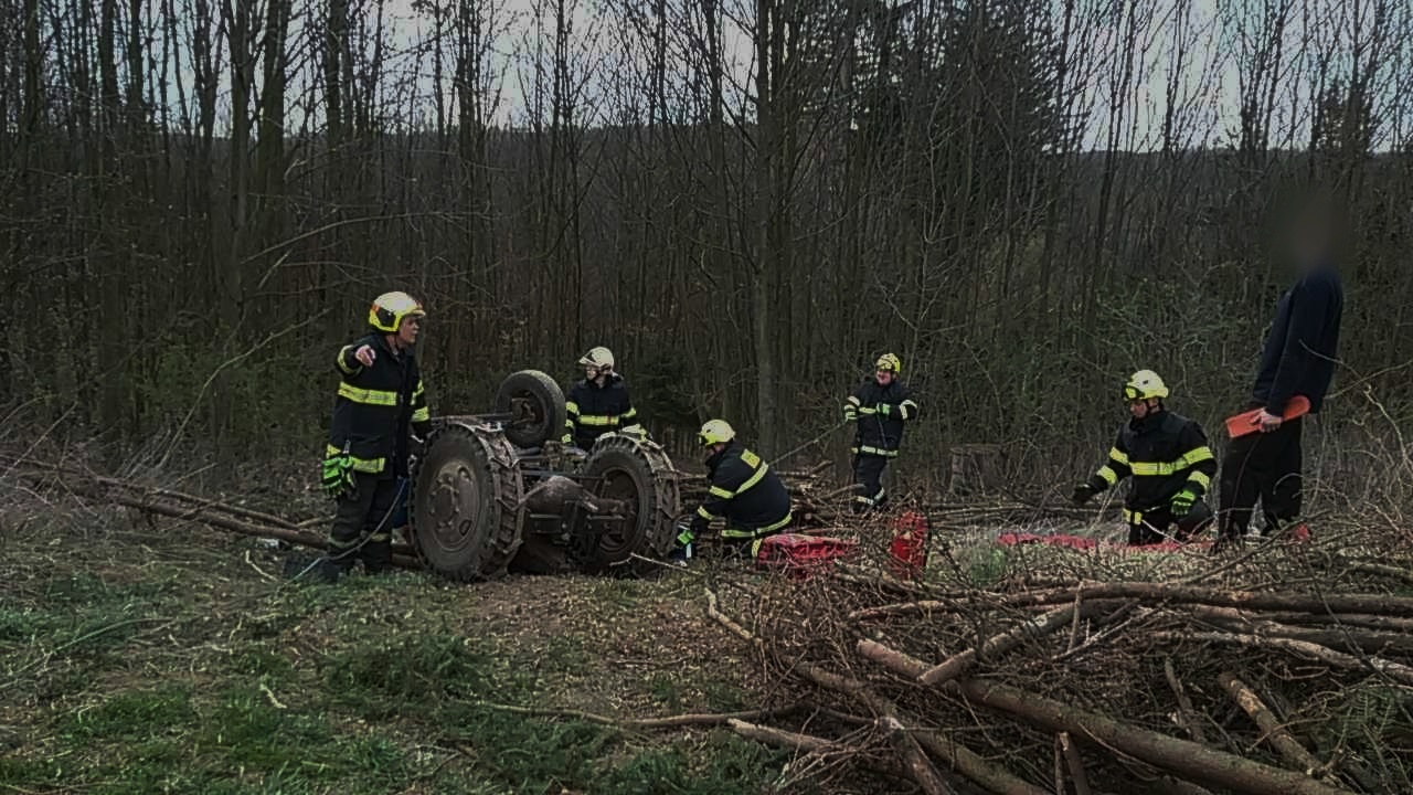 V lese se zde převrátil malý traktor a na místě zůstal zraněný jeho řidič. Jako první dorazila k nehodě dobrovolná jednotka z Jedovnic.
