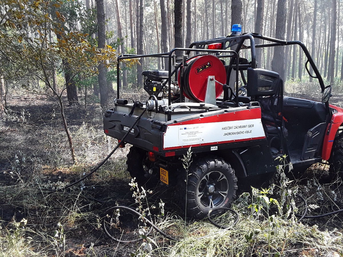 Středa, 9. června 2021 – Minutu po dvanácté hodině jsme přijali informaci o požáru lesního porostu nedaleko Rohatce na Hodonínsku. Operační důstojník vyslal k místu události celkem 13 jednotek profesionálních a dobrovolných hasičů. Více jak třicítka zasahujících nasadila do boje proti ohni celkem deset vodních proudů. Kvůli špatně přístupnému terénu jsme využili i speciální čtyřkolku ze stanice Hodonín.