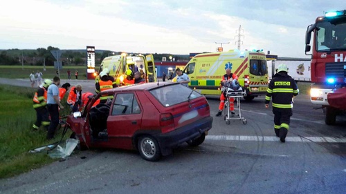 Jednotky HZS ze Slavkova u Brna a Bučovic v pondělí, 29.května 2017, večer zasahovaly u nehody na silnici I/50 na křižovatce k obci...