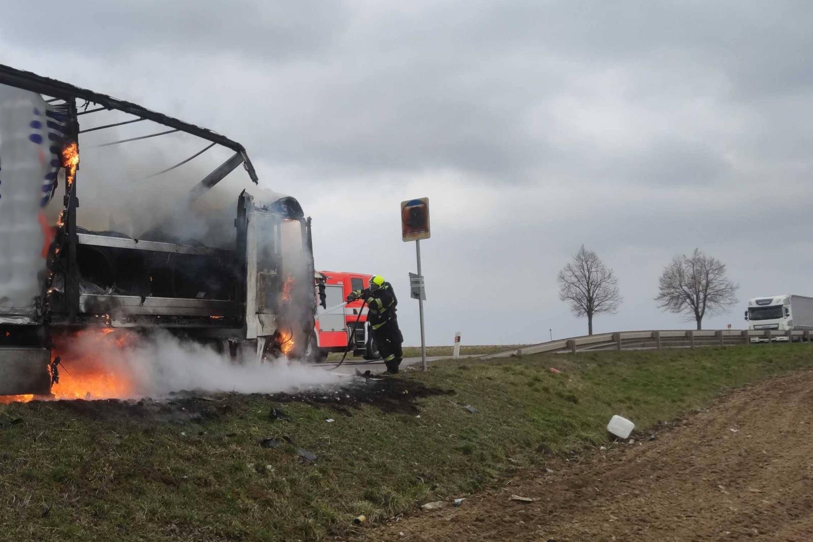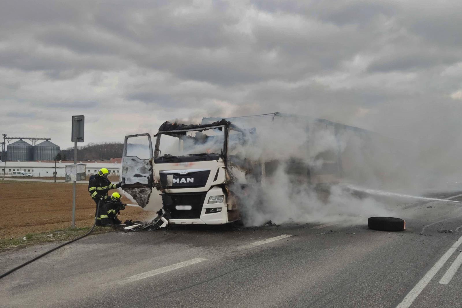 Na Znojemsku hořel kamion