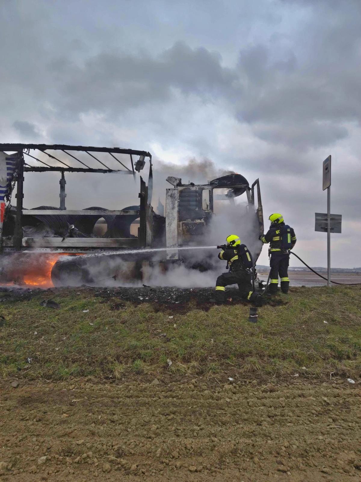 Silnice byla během hasebních prací uzavřena. Požár se podařilo dostat pod kontrolu během 20 minut. Zcela zlikvidován byl ve 12.29 hod. Hasiči následně přečerpali z kamionu pohonné hmoty.