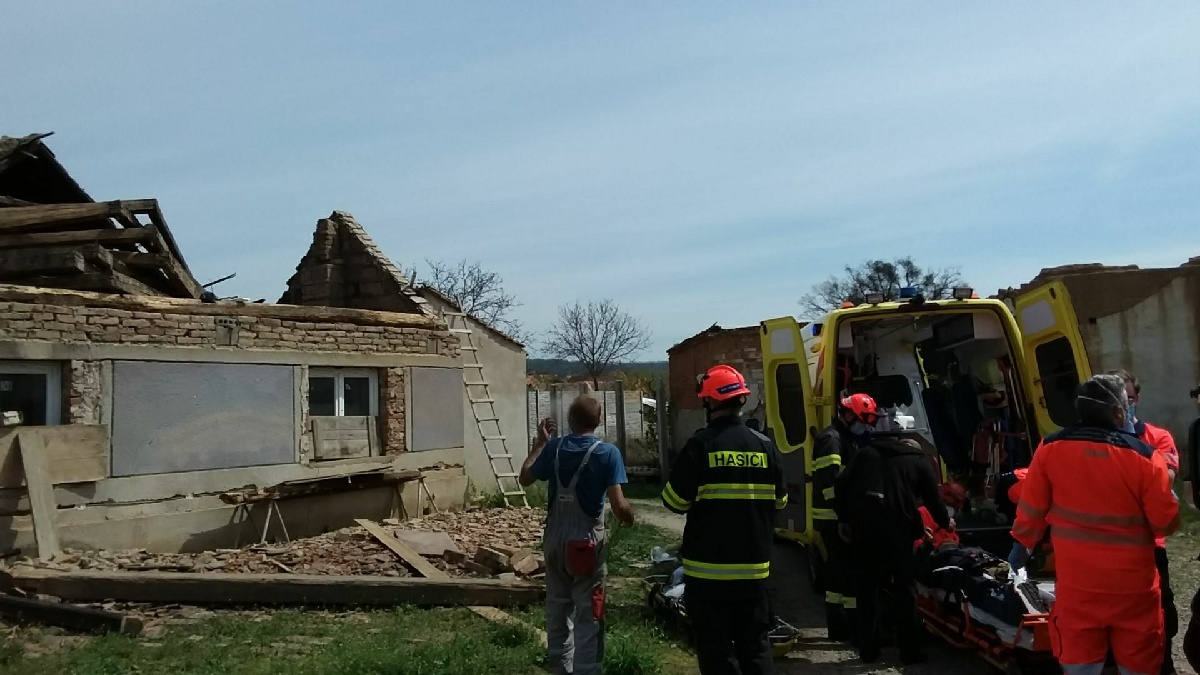 Po příjezdu bylo zřejmé, že zraněných je víc. Hasiči zjistili, že s největší pravděpodobností během rozebírání střešní konstrukce se na pracovníky zřítil komín. Tři lidé se zranili. Jeden slezl z půdy přízemního staršího domku sám. Další dva pracovníky zafixovali a transportovali na zem hasiči.