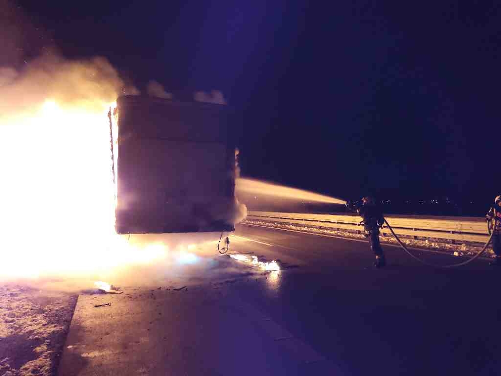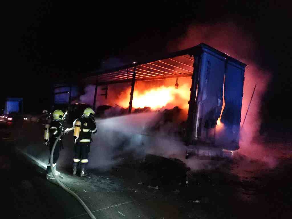 Pondělí, 29. listopadu 2021 – Po půl osmé večer jsme zasahovali u požáru návěsu na dálnici D2. Kamion zůstal stát na 18. kilometru...