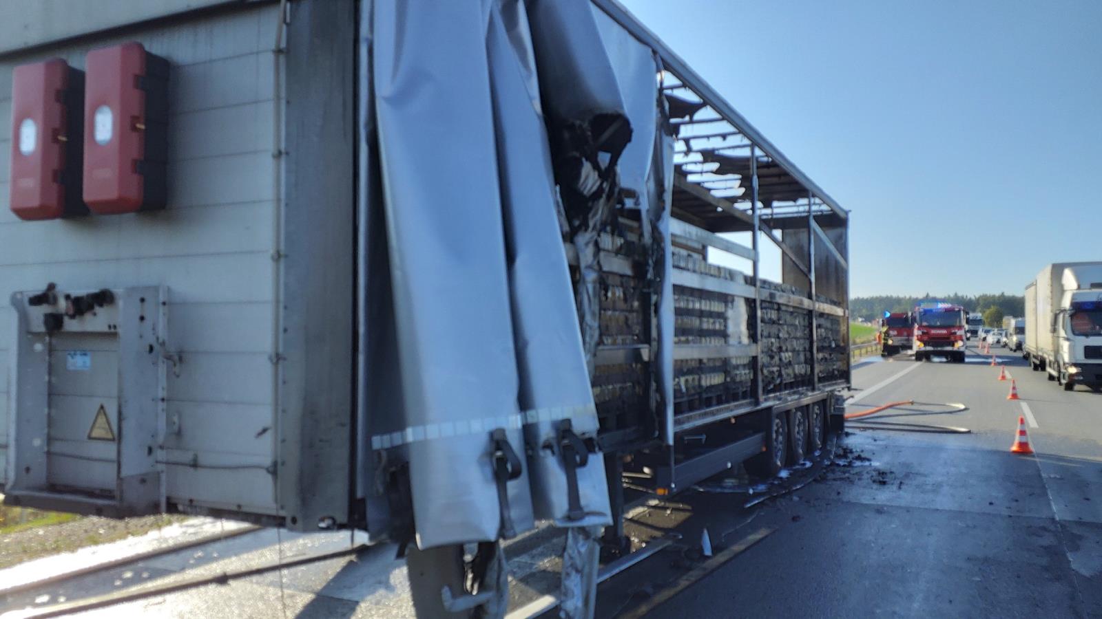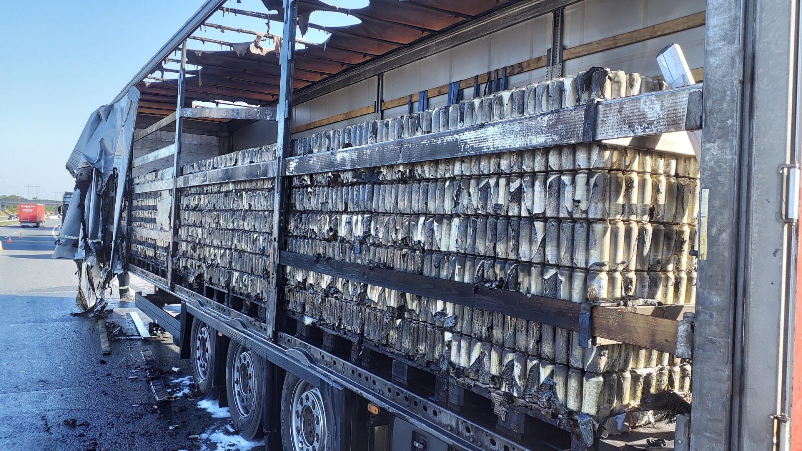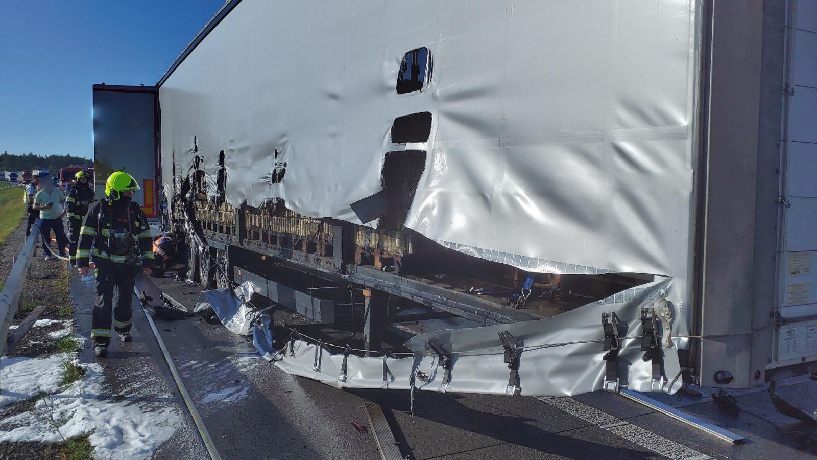 Na dálnici hořel návěs s pivem