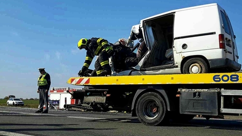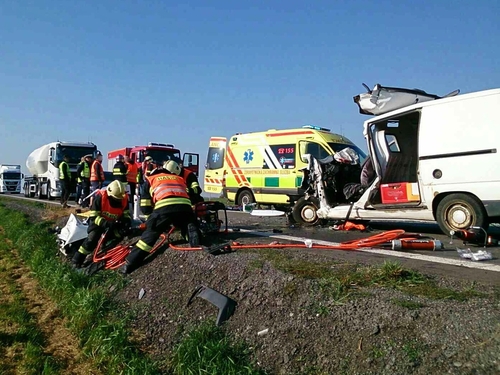 vozidlo s užitkovým automobilem. Nákladní automobil zůstal po nehodě ležet na boku mimo silnici se zraněným řidičem. Z druhého vozu hasiči vyprostili pomocí hydraulického nářadí vážně zraněnou řidičku.