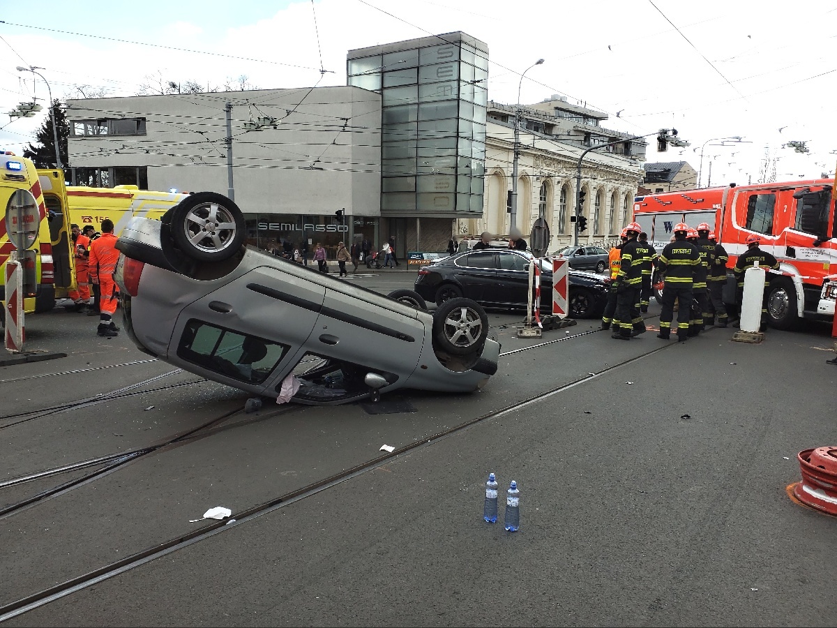 Čtvrtek, 7. dubna 2022 – Dnes dopoledne vyjela jednotka ze stanice Lidická k nehodě dvou osobních automobilů, která se stala nedaleko královopolského Semilassa. Jedno z vozidel se po střetu převrátilo na střechu. Posádka záchranné služby ošetřila dvě zraněné osoby. Hasiči zabezpečili havarovaná vozidla proti vzniku požáru a po vyšetření nehody uklidili vozovku a převrátili vůz zn. Renault zpět na kola. Provoz byl po dobu zásahu v ulici Kosmova a Palackého třída omezen.