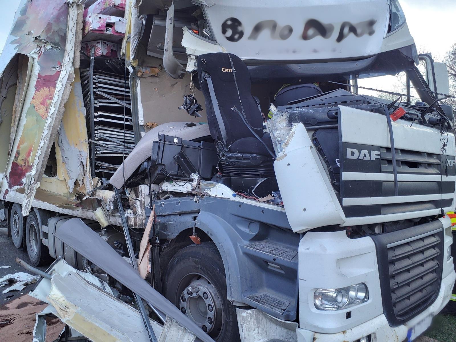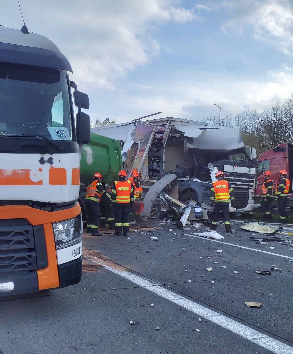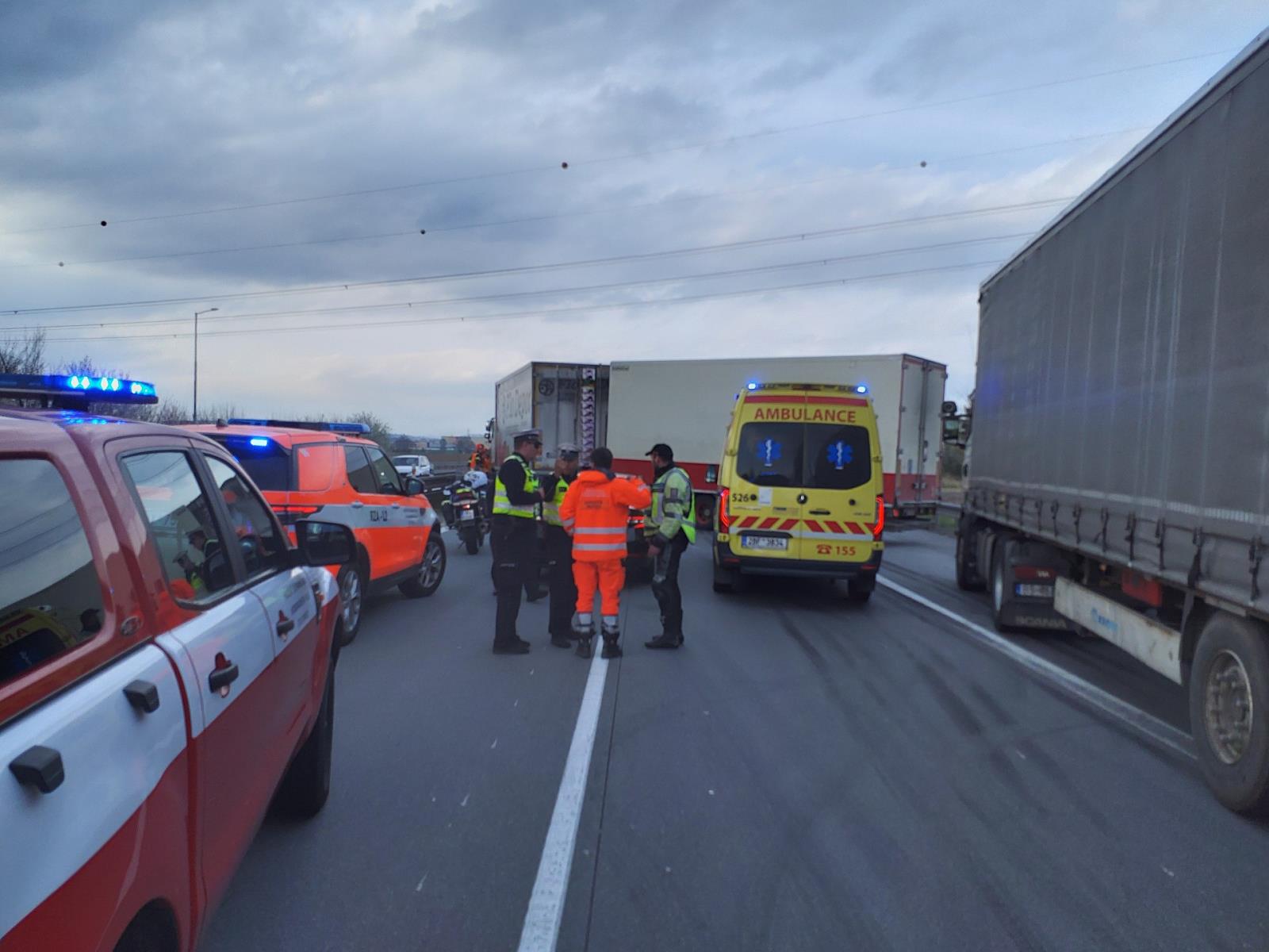 Středa, 27. března 2024 – Pět jednotek profesionálních hasičů vyjelo odpoledne k vážné nehodě dvou nákladních automobilů na dálnici D2 nedaleko brněnských Chrlic.