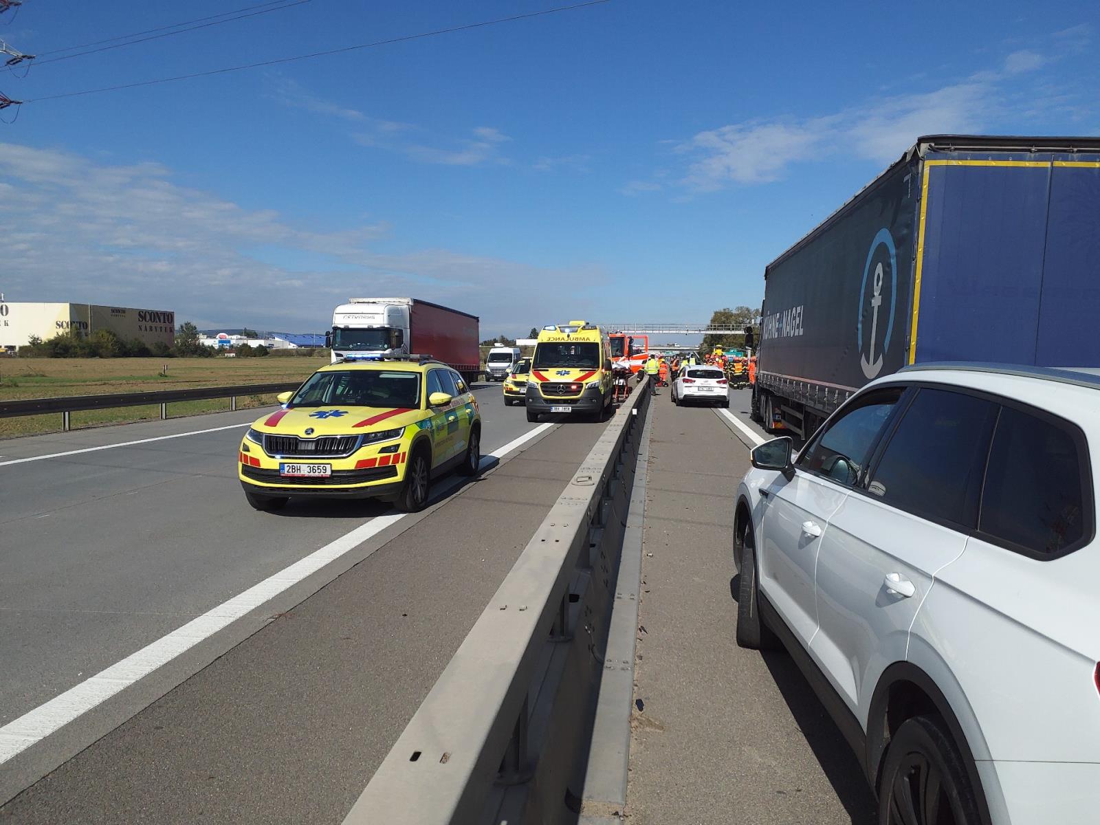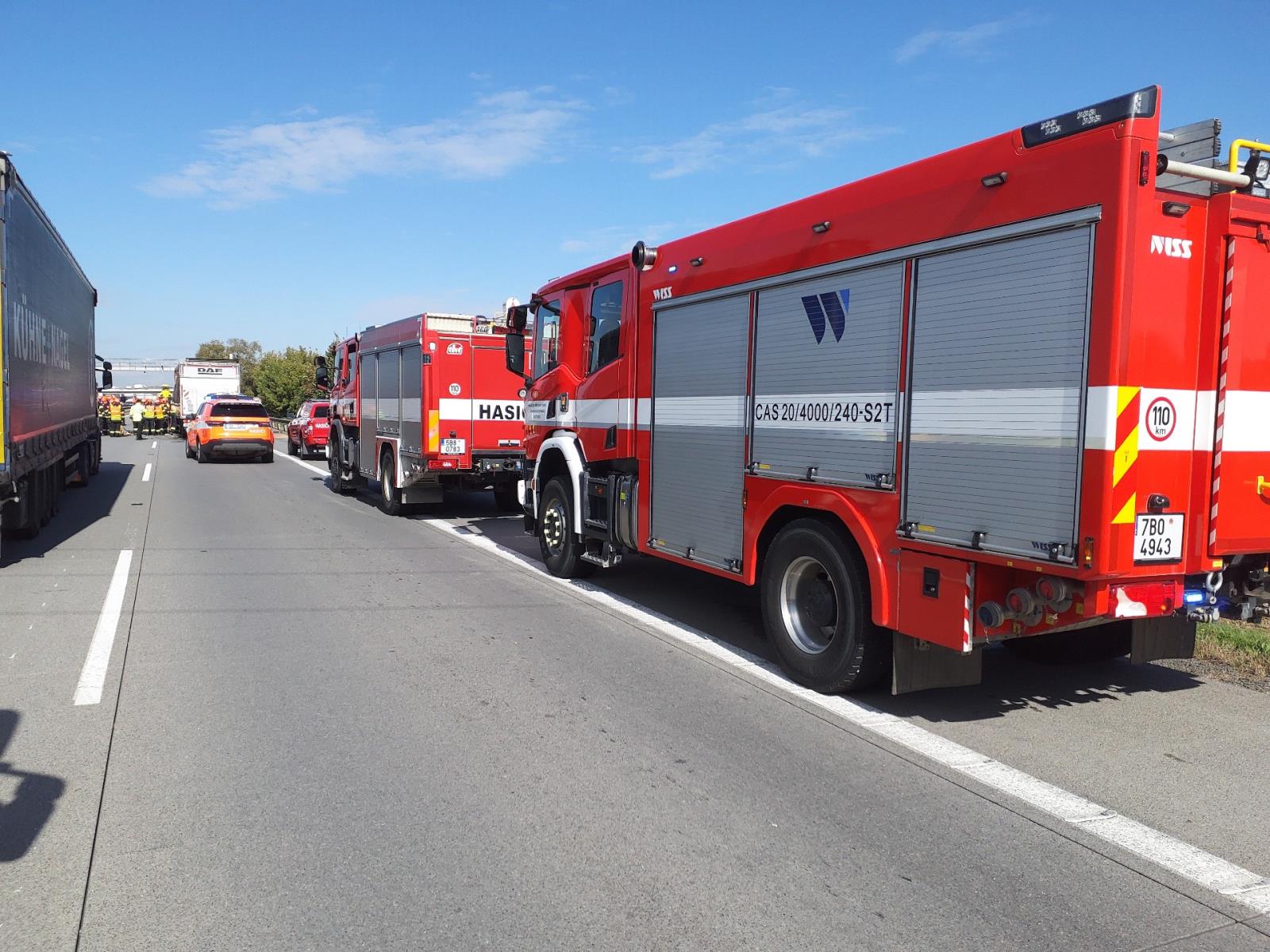 Úterý, 1. října 2024 – Dnes před polednem jsme vyslali jednotky k vážné nehodě kamionů na dálnici D2 ve směru na Brno. Provoz dálnice byl omezen.