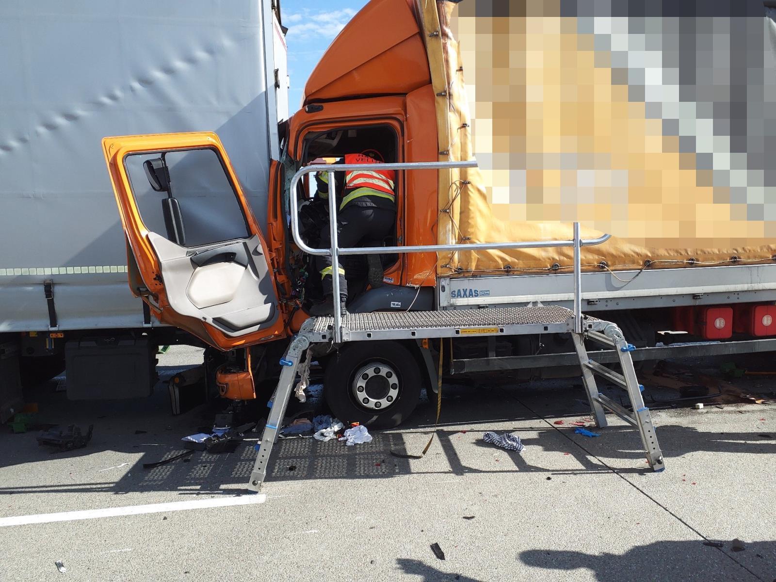V 11.26 hodin přijalo naše operační středisko informaci o nehodě dvou kamionů na D2 před sjezdem na Modřice. K události vyjely 4 jednotky profesionálních hasičů. V 11.35 dorazila na místo první jednotka. Informace o zaklínění jednoho z řidičů se potvrdila.