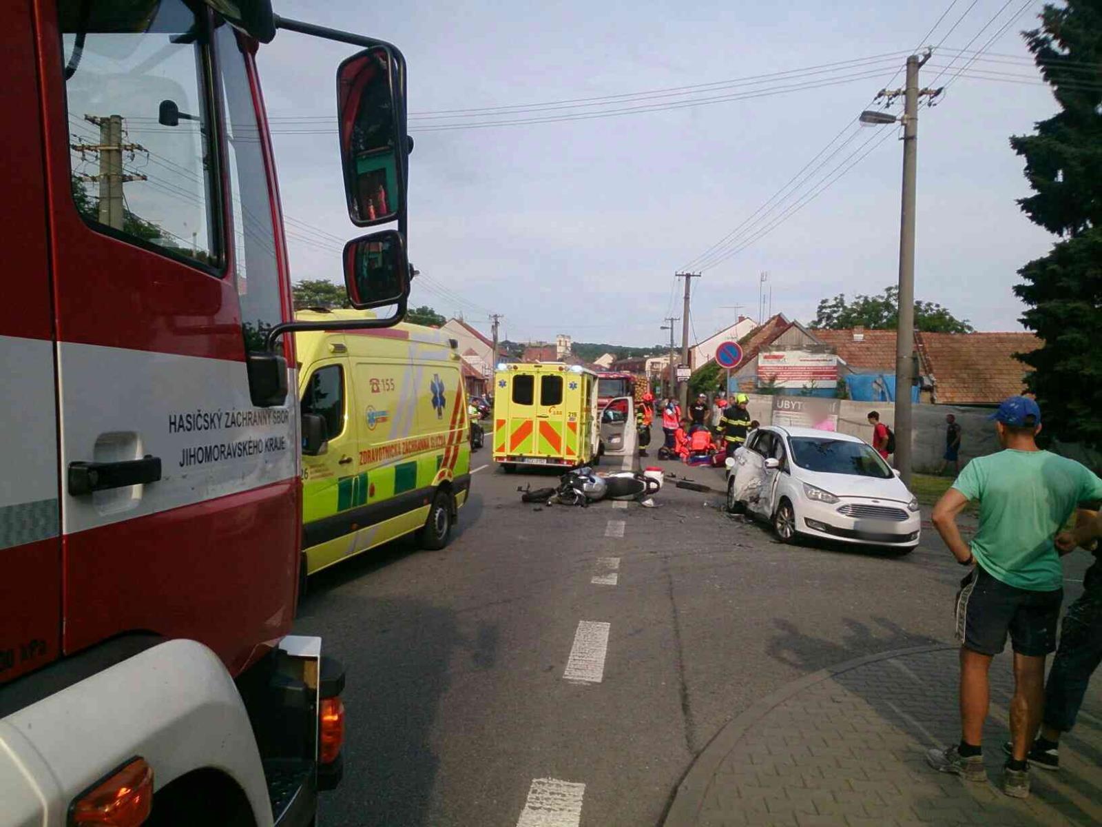 Ve středu odpoledne vyjížděly dvě jednotky profesionálních hasičů k vážné dopravní nehodě do Bučovic na Vyškovsku. Při střetu osobního automobilu a motocyklu se zranil motorkář. Zasahující hasiči poskytli zraněnému řidiči první pomoc a následně jej předali do péče letecké záchranné služby. Po zadokumentování nehody policisty jednotky uklidily silnici od střepů a uniklých provozních kapalin. Provoz na silnici č. I/50 byl po dobu zásahu složek IZS omezen.