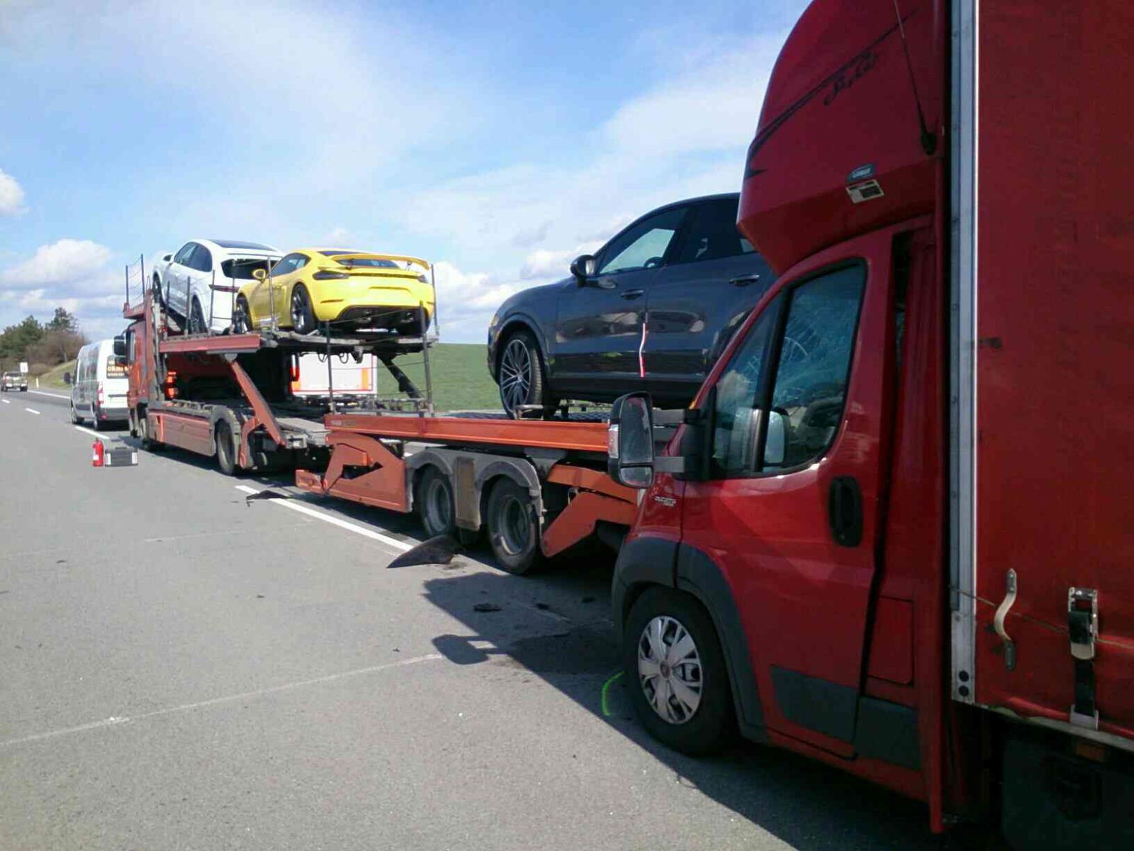 Na dálnici D2 však bylo rušno i nadále.  Informaci o třetí nehodě jsme totiž přijali ve 12.10 hod. Stala se v dopravním zúžení na 38. kilometru ve směru na Brno, kde se střetly dva osobní a jeden nákladní vůz. Operační středisko vyslalo na místo dvě jednotky.  Hasiči pomohli s transportem zraněné řidičky z osobního auta.  Následně zajistili částečnou průjezdnost dálnice ve směru na Brno. Po 13. hodině předal velitel zásahu místo Policii ČR a jednotky se vrátily na základny.