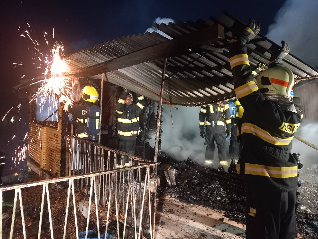 Noční požár chaty zaměstnal deset jednotek hasičů, které dorazily během několika minut od nahlášení události. Oheň zachvátil objekt v plném rozsahu a vyžádal si vyhlášení druhého stupně poplachu. Hasiči museli nasadit několik vodních proudů, rozebírat konstrukce a dlouho dohašovat skrytá ohniska. Zranění hlášena nejsou.