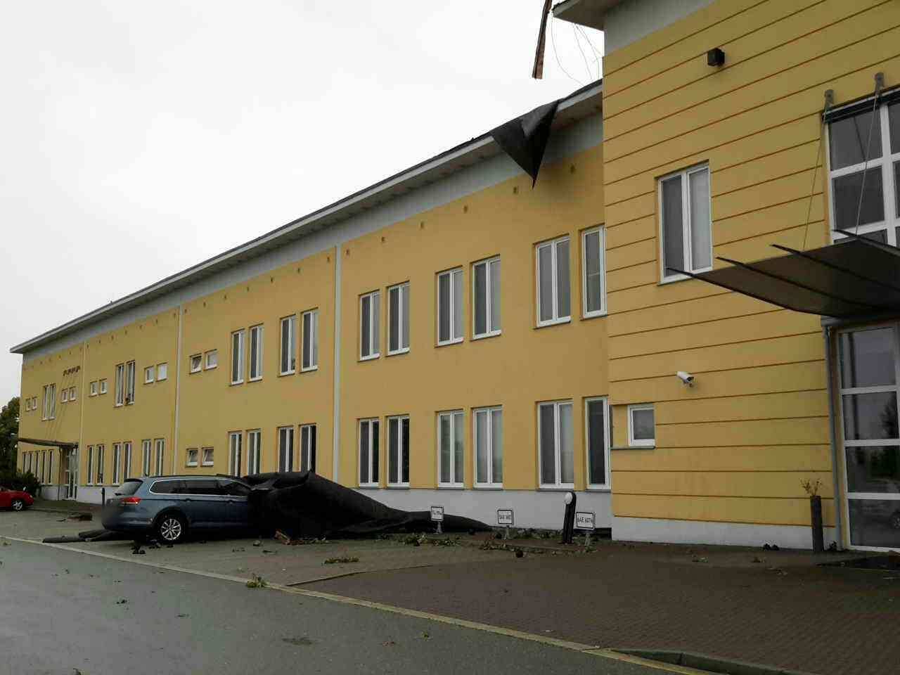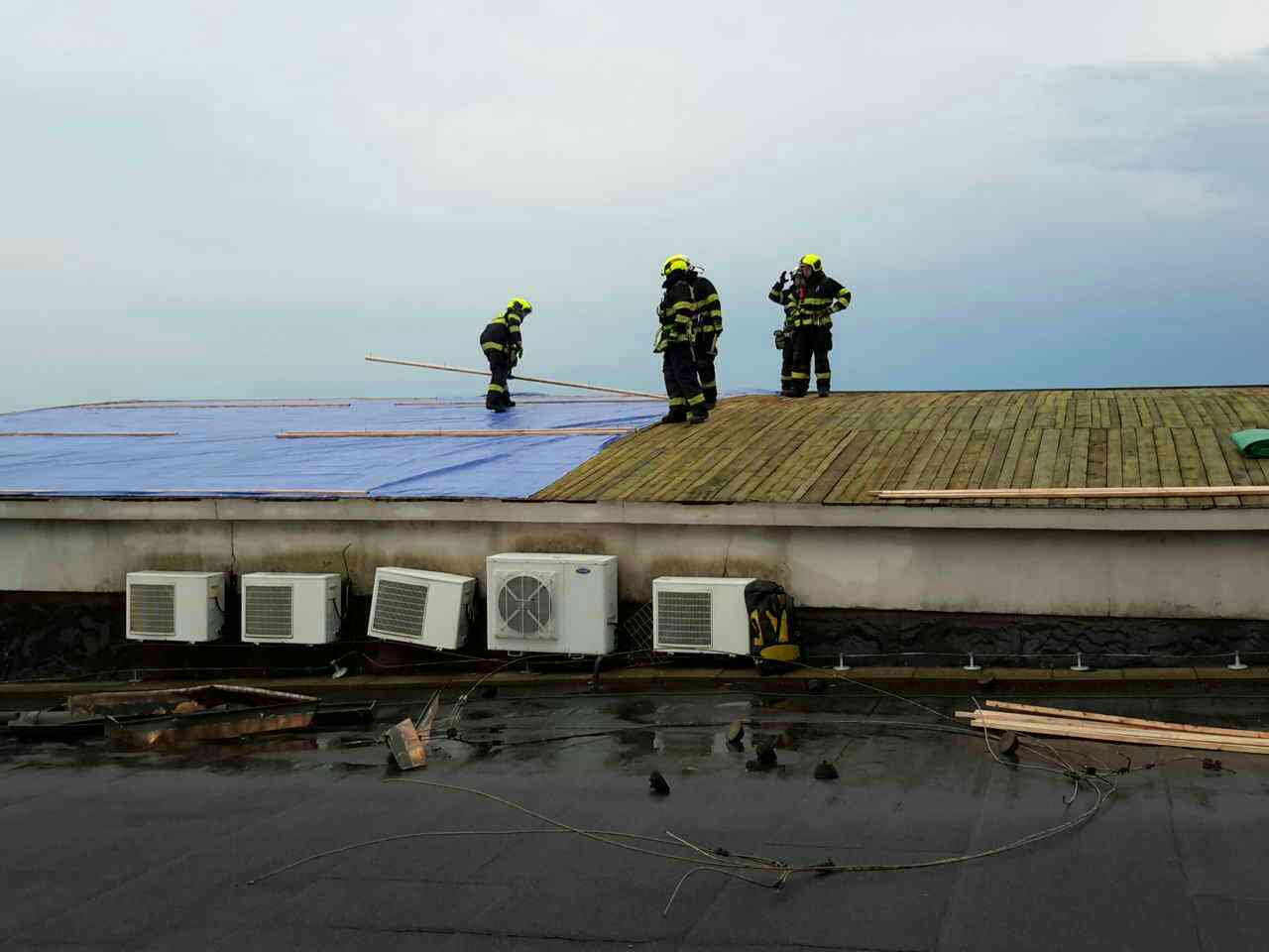 V brněnských Vinohradech silný poryv větru strhl asi 50 m2 střešní krytiny z dvoupodlažní budovy. Jednotky ze stanice Líšeň a Lidická zbytky poškozené části rozřezaly a spustily ze střechy na zem. Zásah zde trval téměř dvě hodiny.