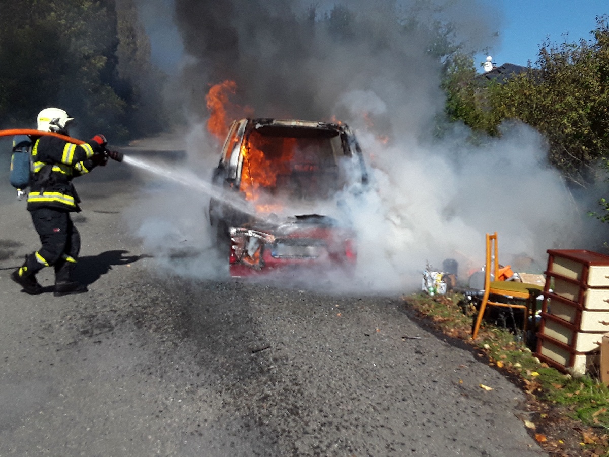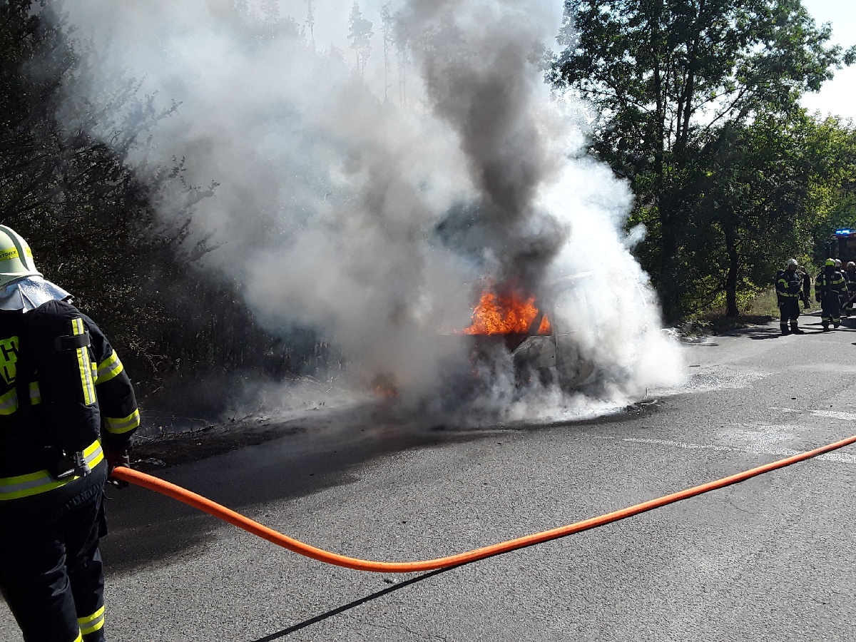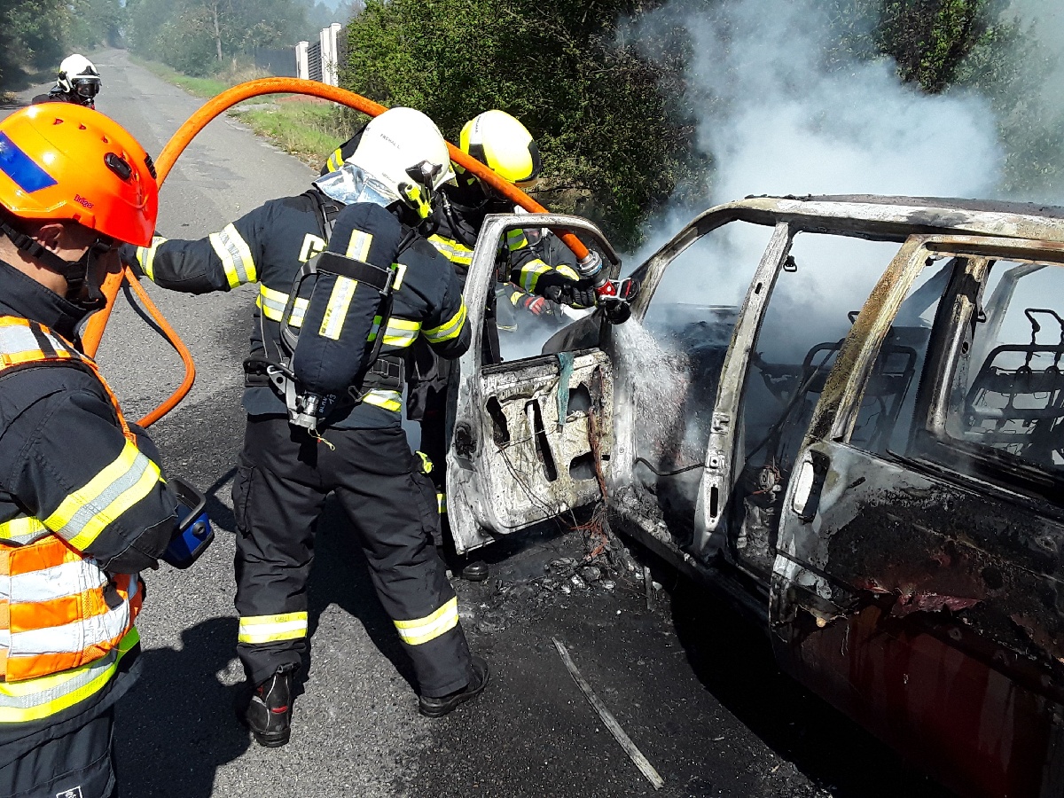 Oheň hasiči dostali pod kontrolu v 12.58 hodin pomocí dvou vodních proudů. Plameny vozidlo zcela zničily.