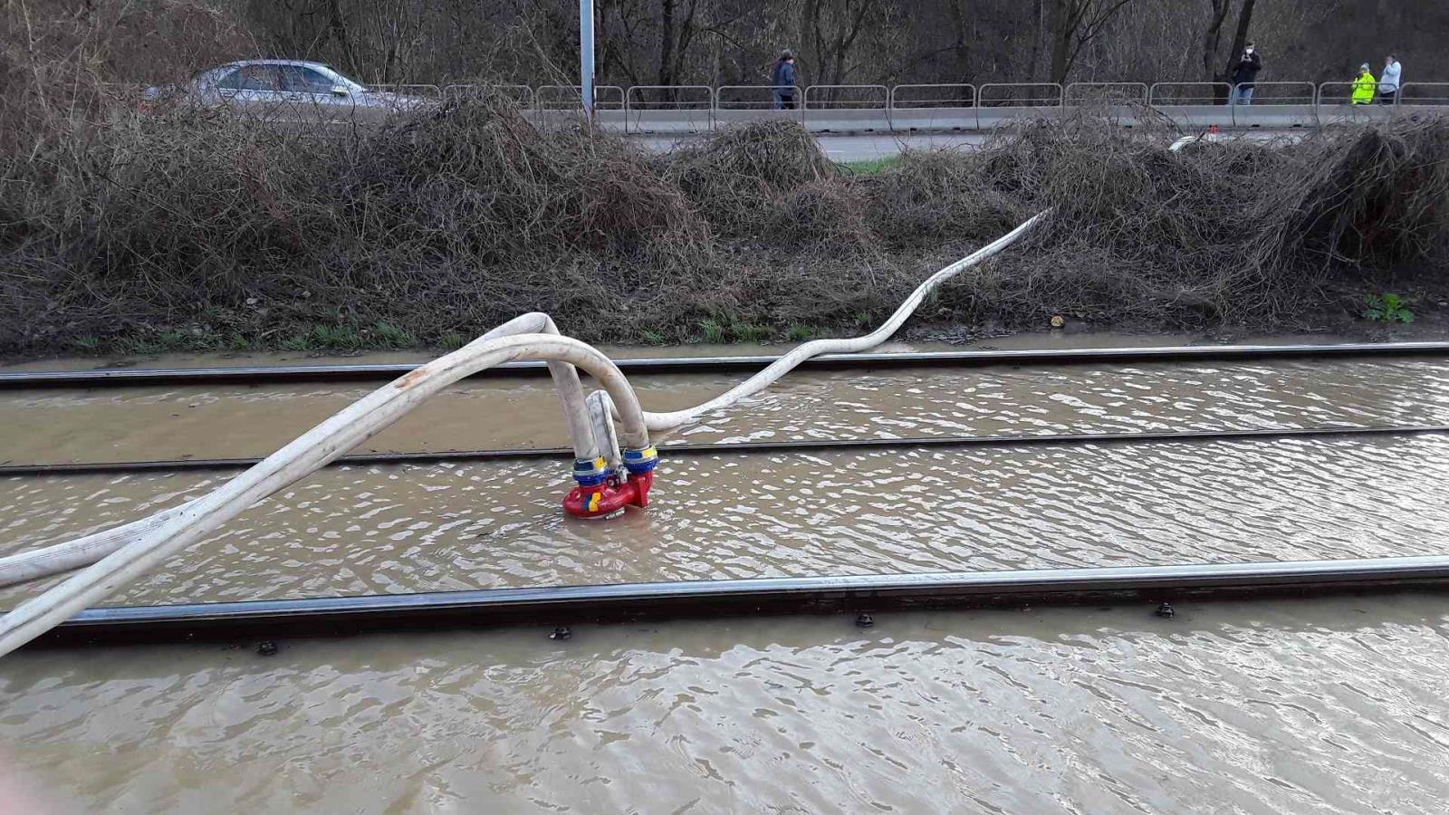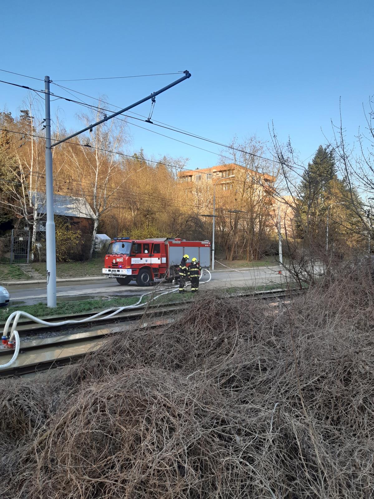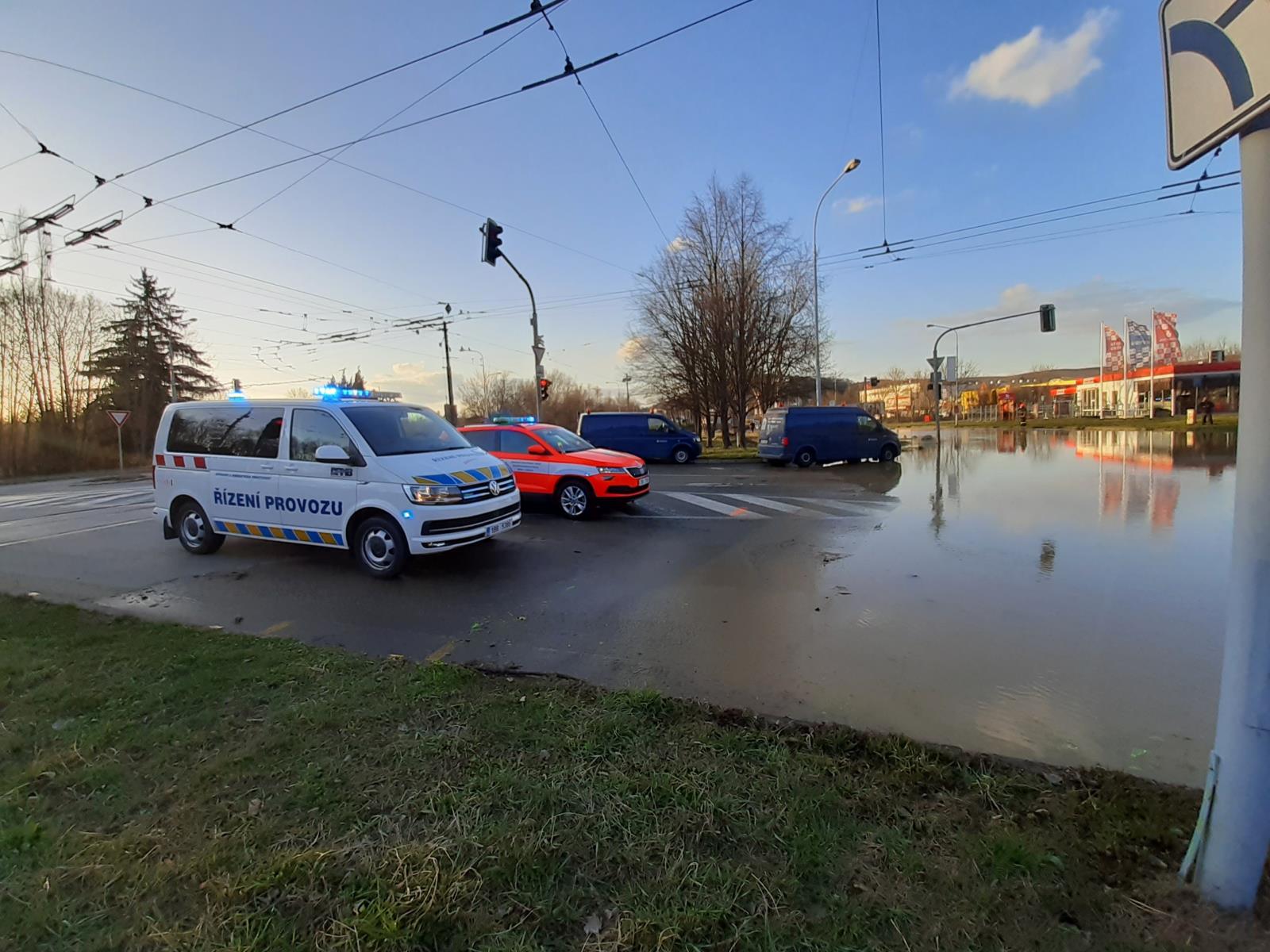 Čtvrtek 8. dubna 2021 - Šest jednotek profesionálních a dobrovolných hasičů vyjelo ve čtvrtek odpoledne k vodovodní havárii v ulici Bystrcká v Brně. Hasiči na místě zjistili, že voda z prasklého potrubí zaplavila blízkou silnici a tramvajovou trať.